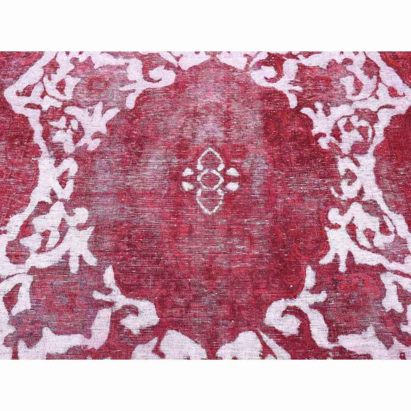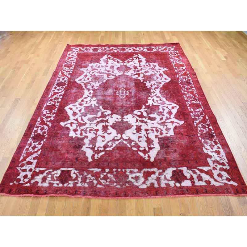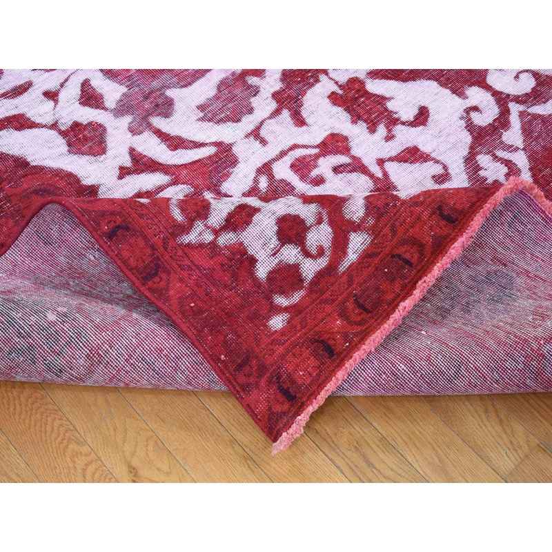 8’2″x11’1″ Crimson Red, Overdyed Vintage Persian Tabriz Barjasta Design, Pure Wool Hand Knotted, Oriental Rug Sh80678