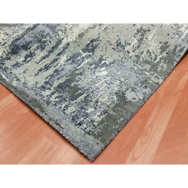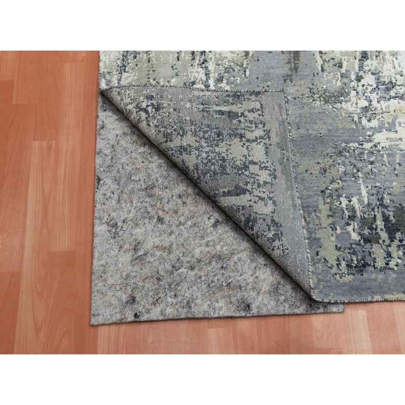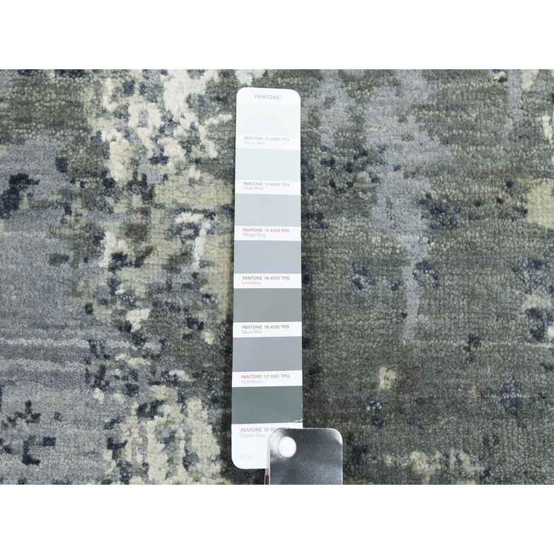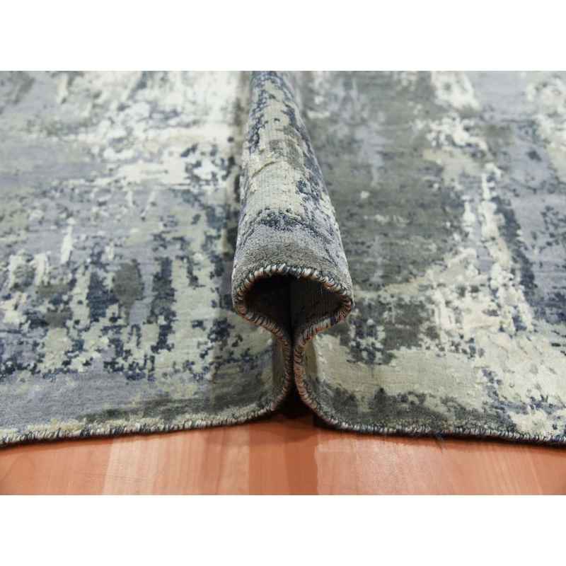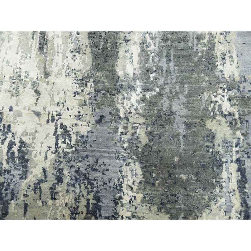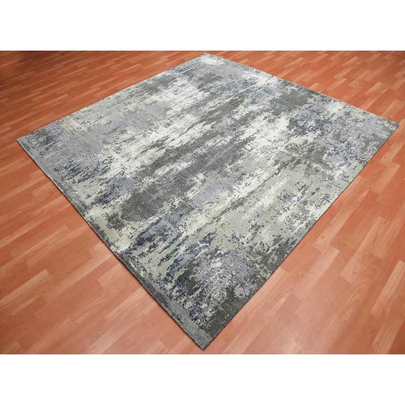 8’2″x8’2″ Charcoal Gray Abstract Design Wool and Silk Denser Weave Persian Knot Hand Knotted Oriental Square Rug Sh75093
