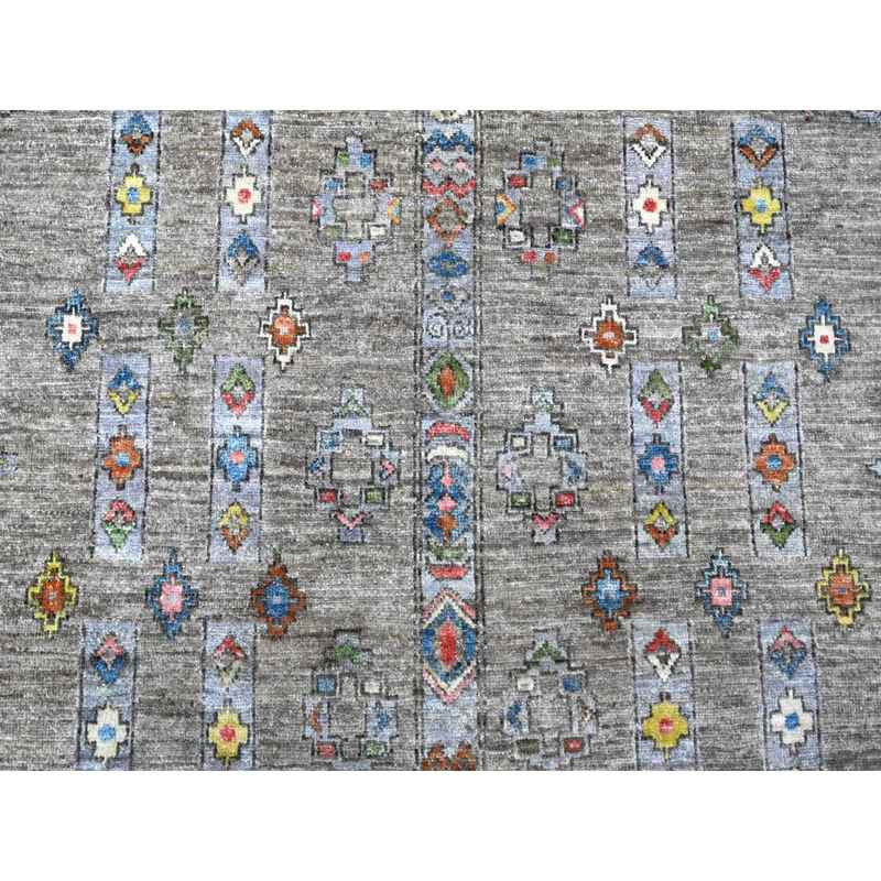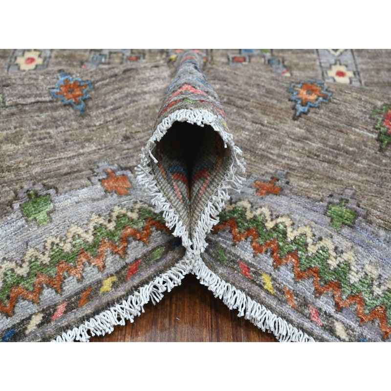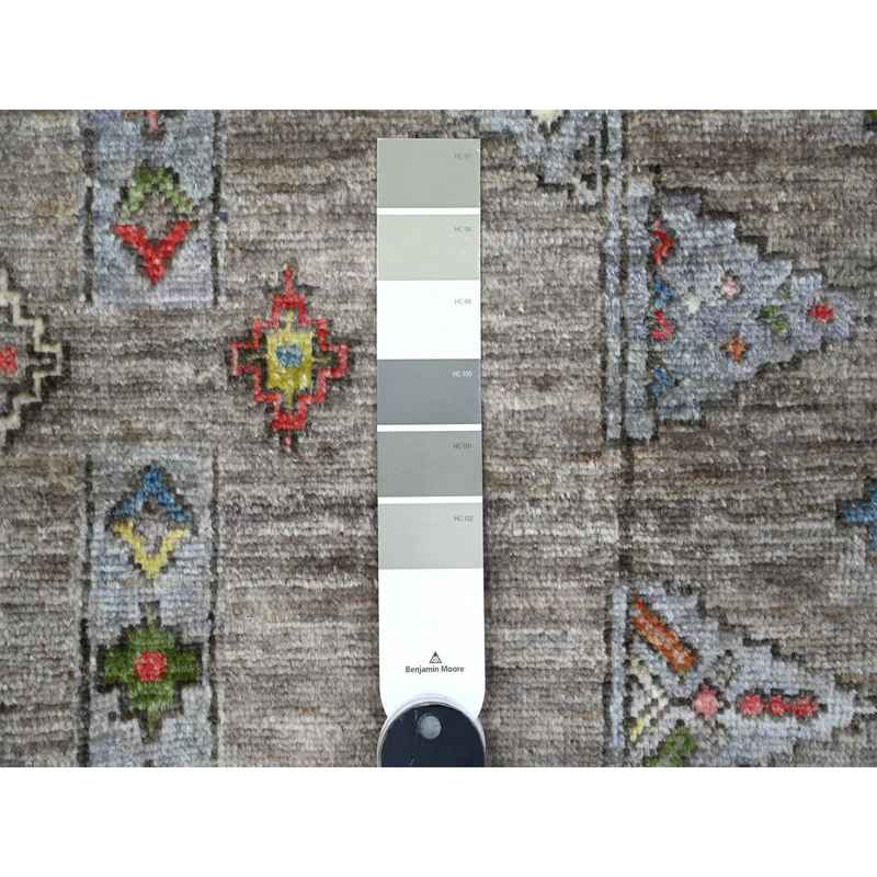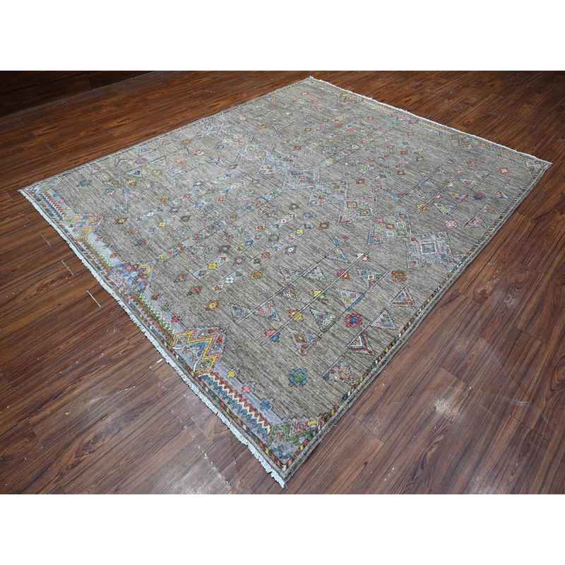 8’2″x9’8″ Cityscape Gray, Denser Weave Natural Wool, Vegetable Dyes, Berber Influence Geometric Motifs Peshawar, Hand Knotted Oriental Rug Sh88957