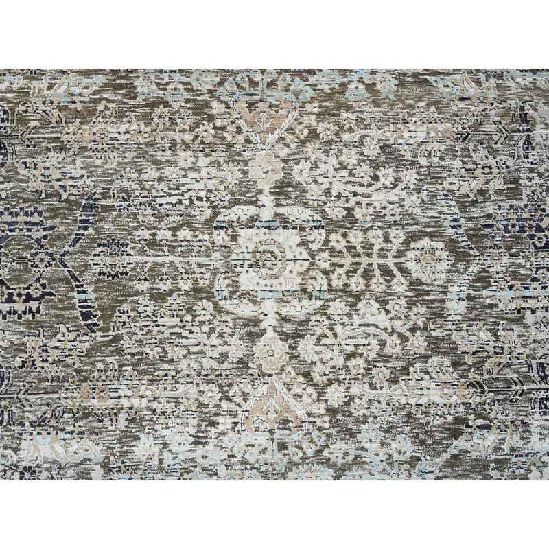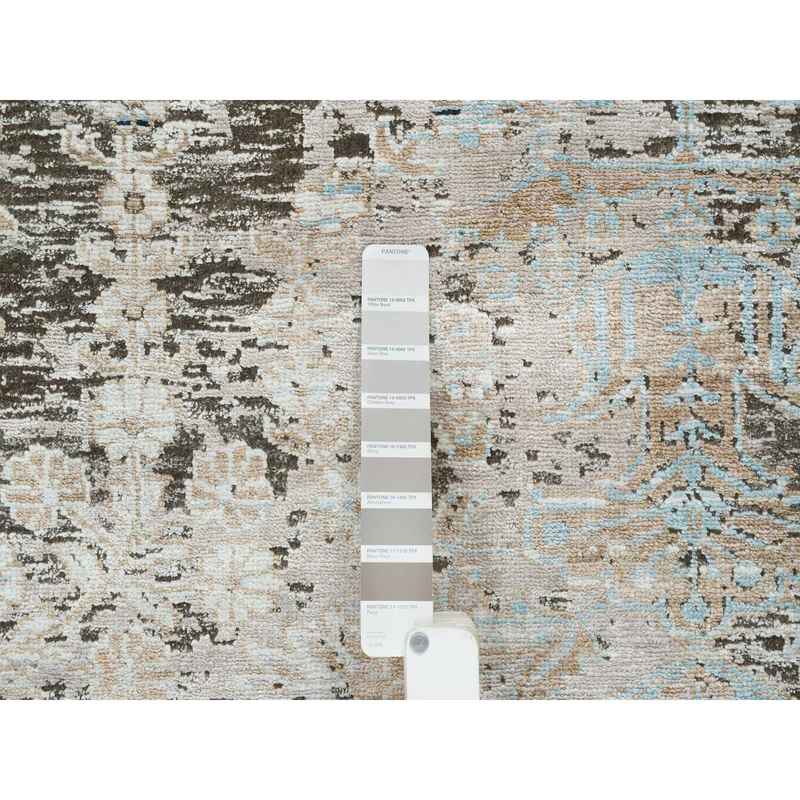 8’3″x10′ Gray, Hand Knotted, Transitional Persian Influence Erased Medallion Design, Silk with Textured Wool, Oriental Rug Sh65663