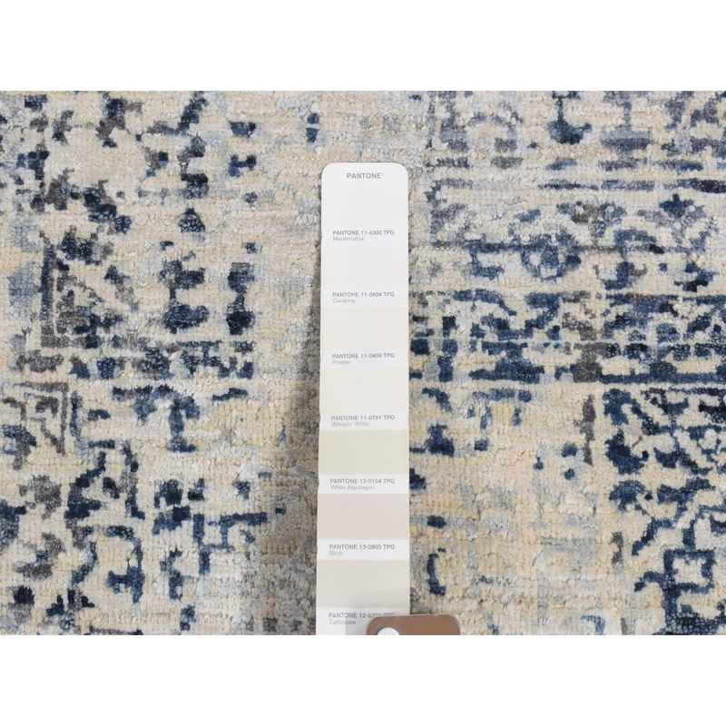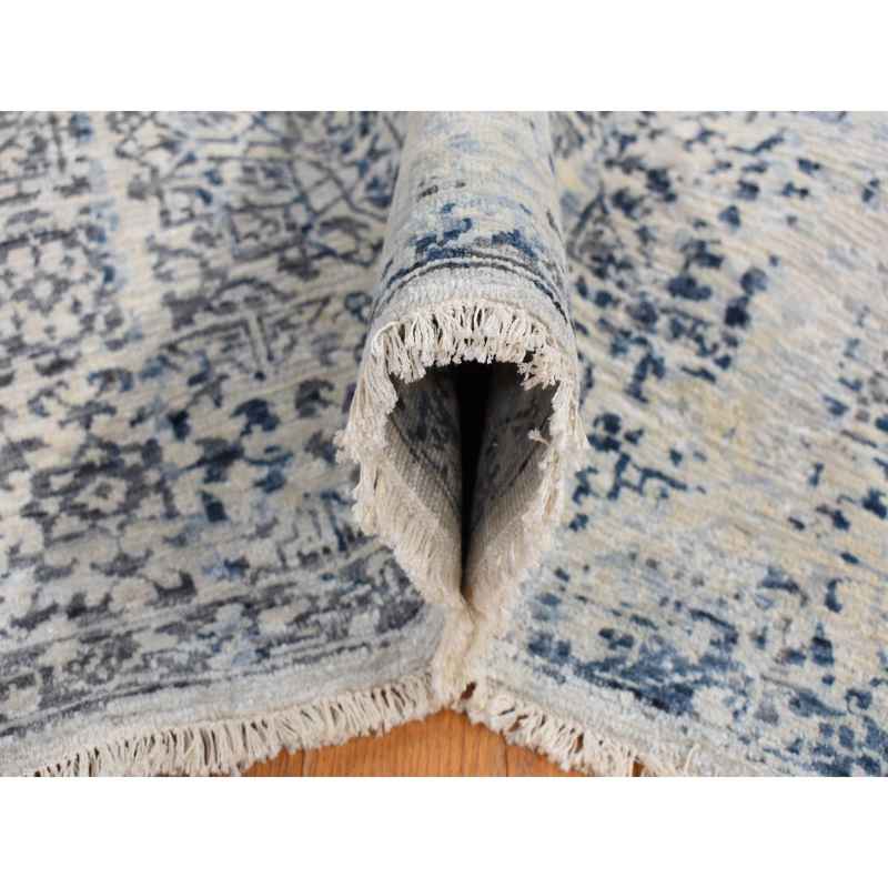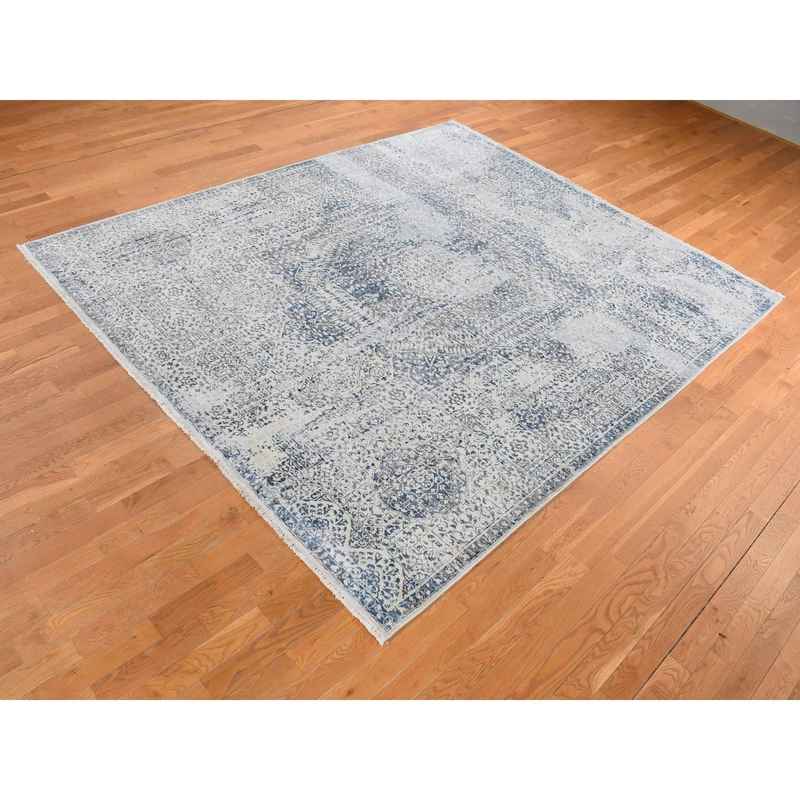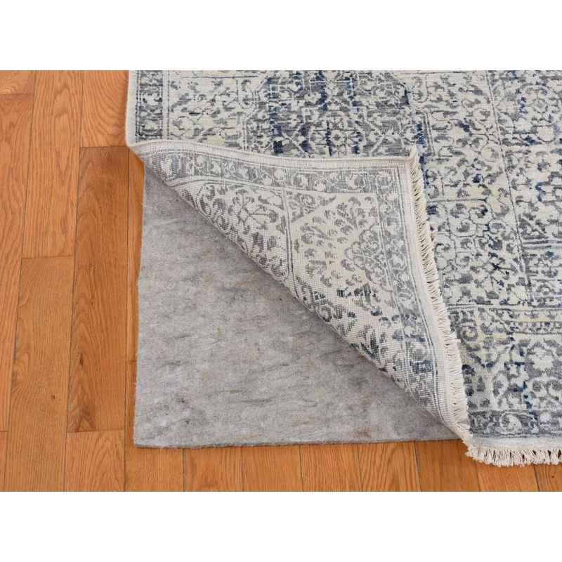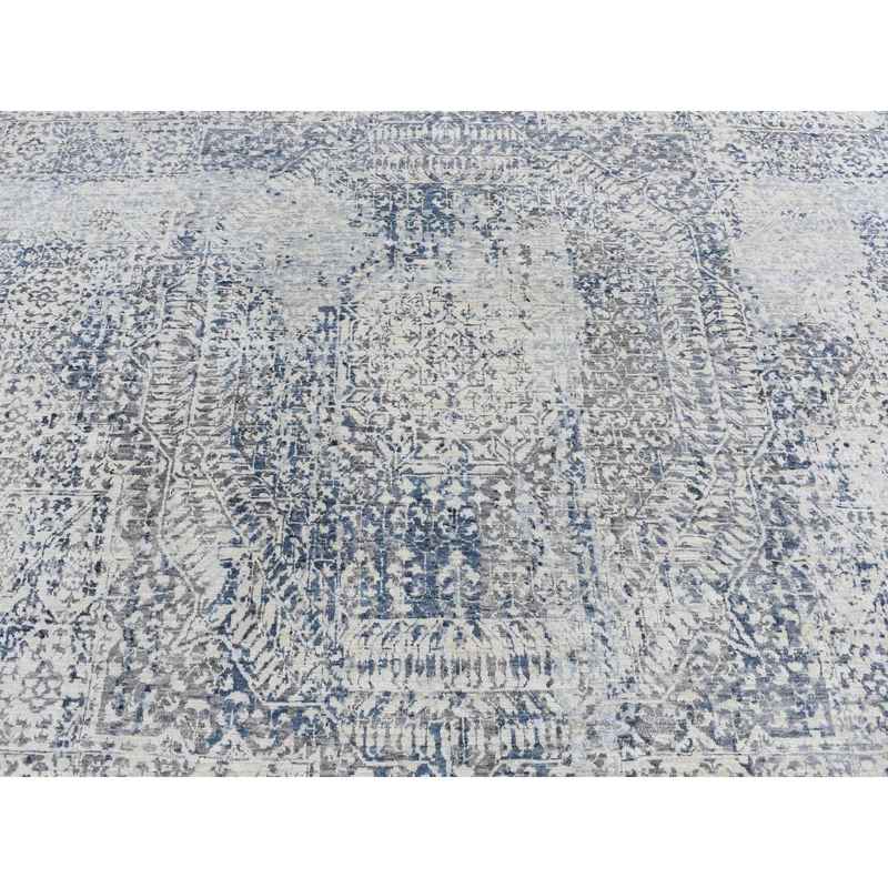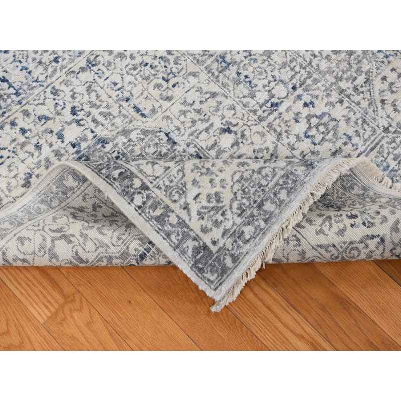 8’3″x10’2″ Cloud Gray, Pure Silk, Broken and Erased 15th Century Mamluk Dynasty Design, Vintage, Hand Knotted, Oriental Rug Sh80835