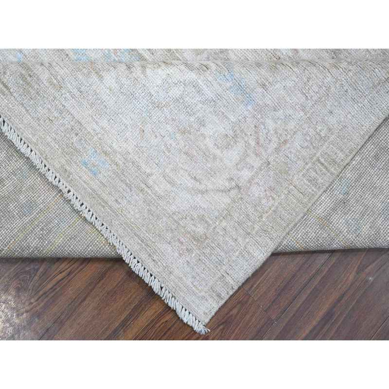 8’3″x9’10” Medium Gray, Hand Knotted Angora Oushak, Natural Dyes with All Over Rural Floral Design, Wool Weft, Afghan Oriental Rug Sh89258