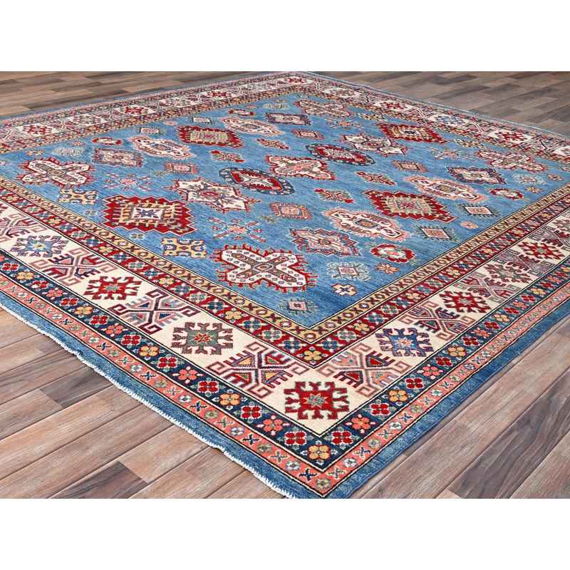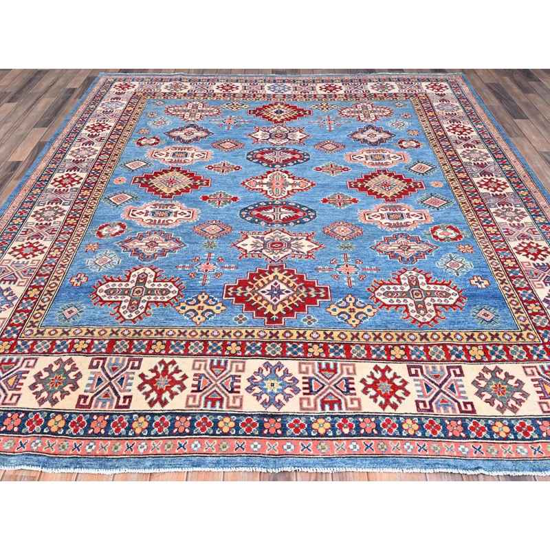 8’3″x9’8″ Ruddy Blue, Hand Knotted Afghan Kazak and All Over Medallions Natural Dyes, Dense Weave 100% Wool, Oriental Rug Sh86281