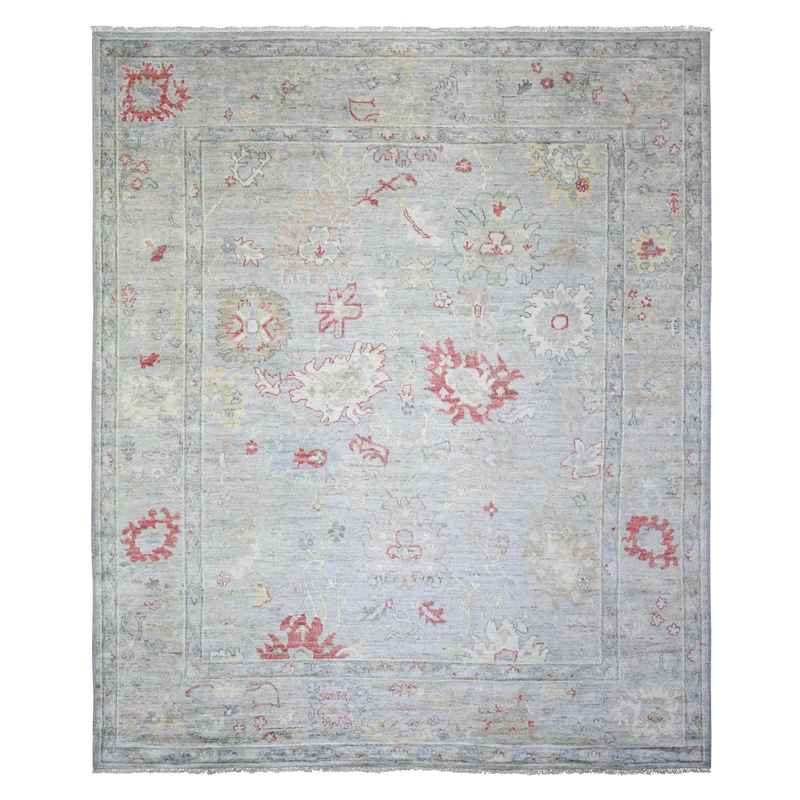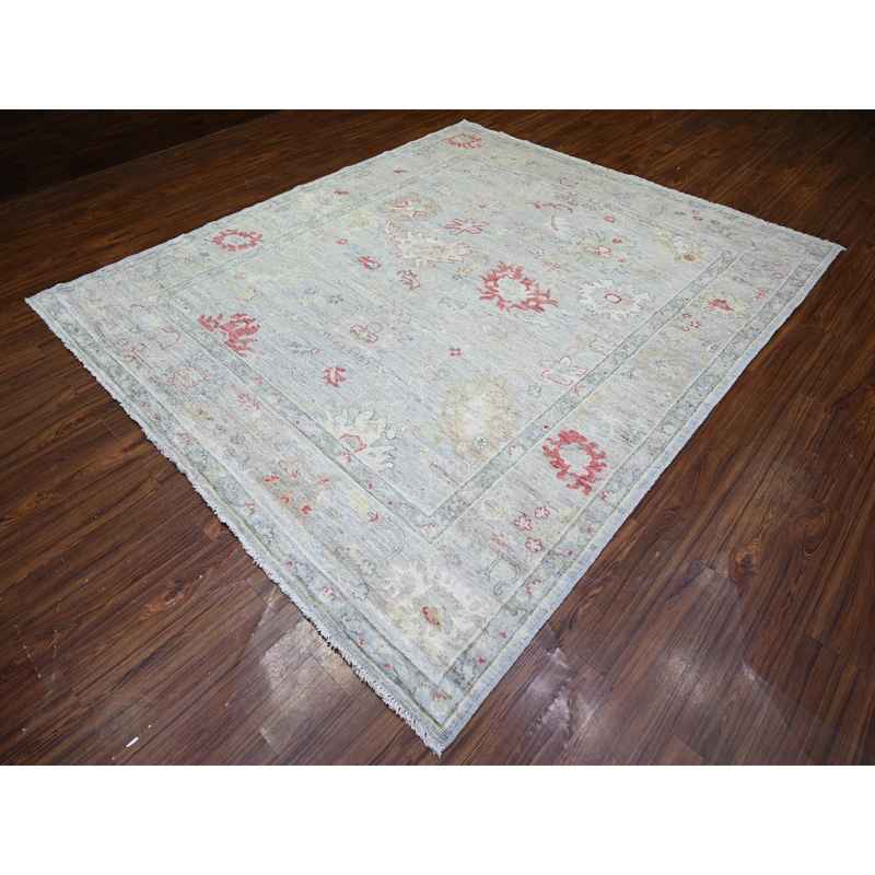 8’3″x9’8″ Silver Gray, Natural Dyes Afghan Angora Oushak with Soft Colors, Extra Soft Wool Hand Knotted, Oriental Rug Sh73799