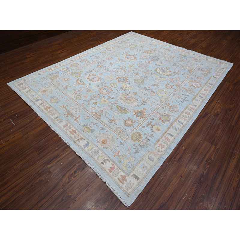 8’4″x10’2″ Blue Topez, All Over Village Elements, Vegetable Dyes, Hand Knotted, Velvety Wool Weft, Angora Oushak Oriental Rug Sh88653