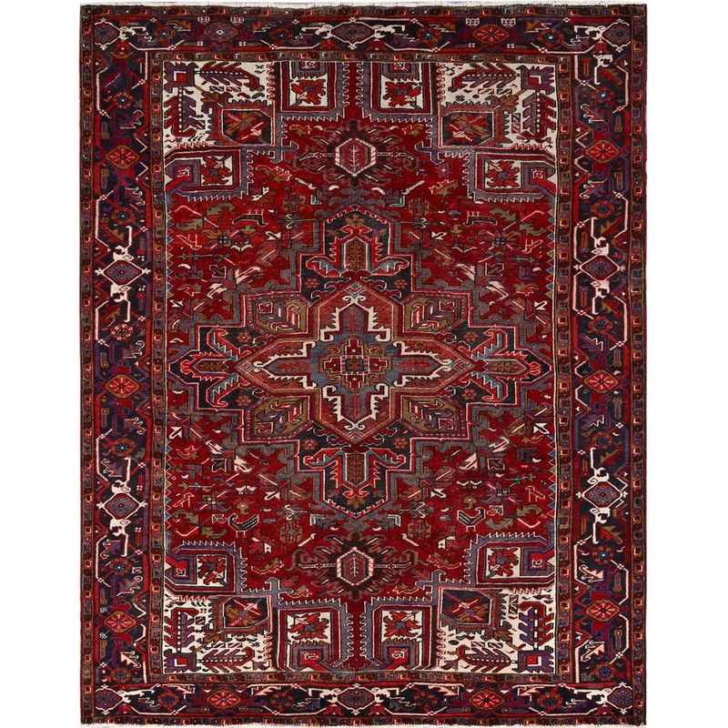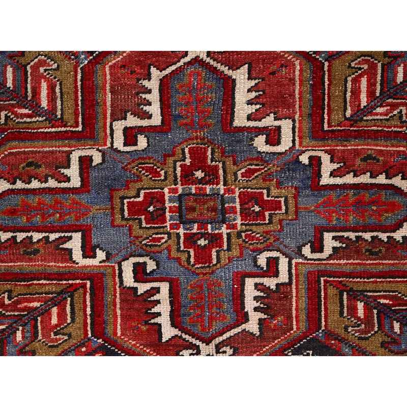 8’4″x10’3″ Vermilion Red, Hand Knotted Semi Antique Persian All Wool Heriz, Good Condition, Sides and Ends Secured and Professionally Cleaned, Oriental Rug Sh85905