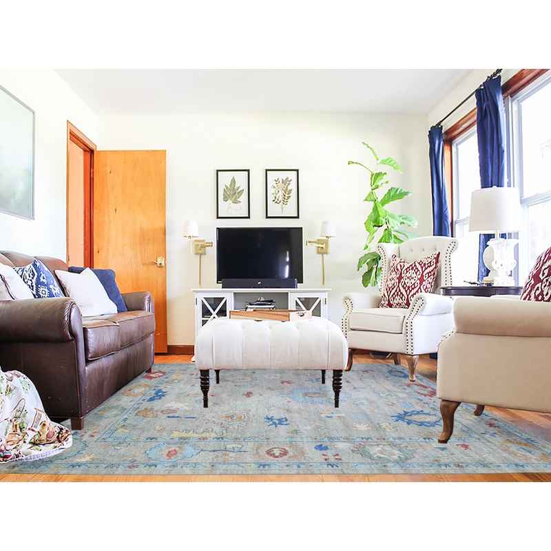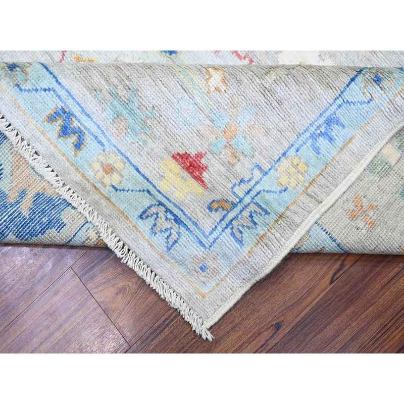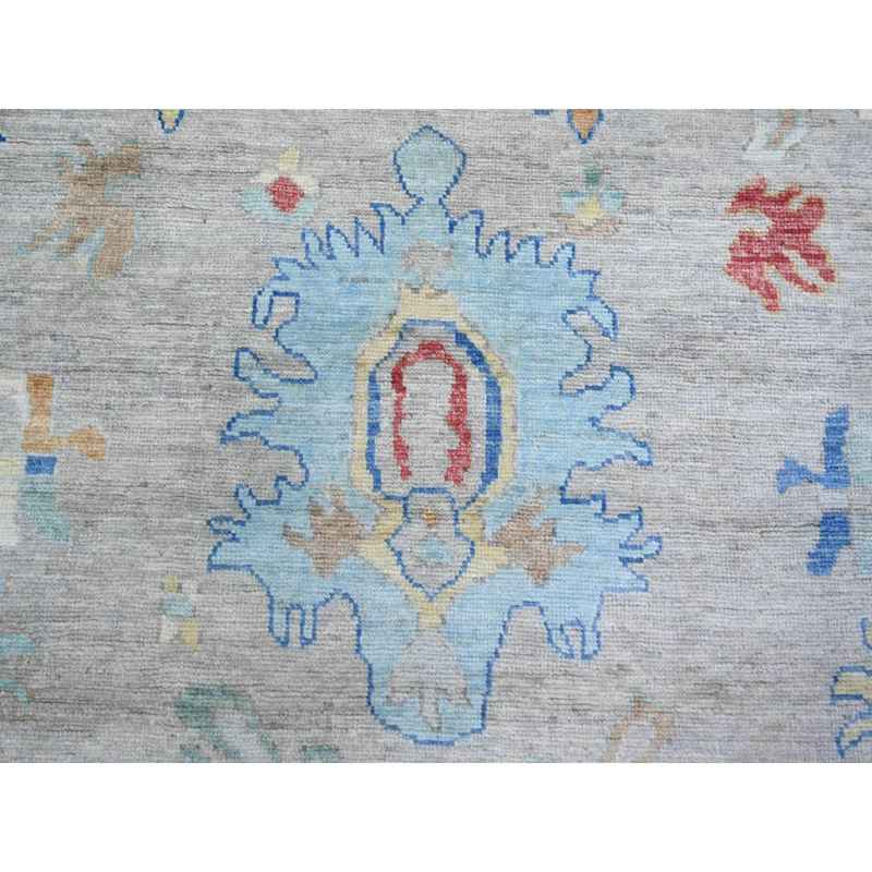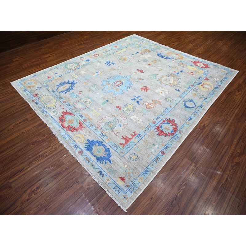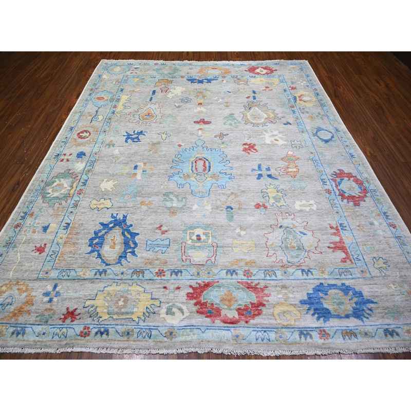 8’4″x9’8″ Cloud Gray, Natural Dyes Soft Wool, Hand Knotted Afghan Angora Oushak with Colorful Motifs, Oriental Rug Sh74022