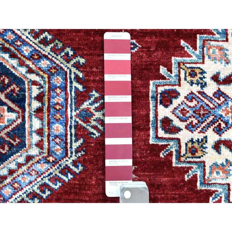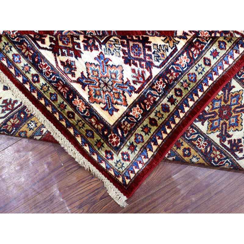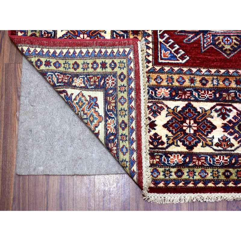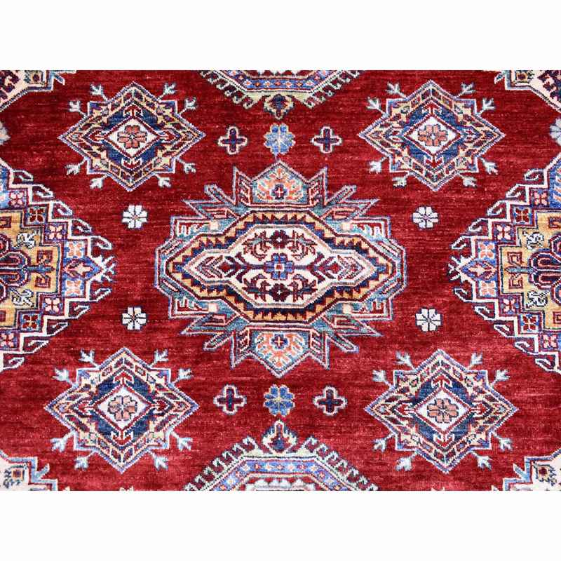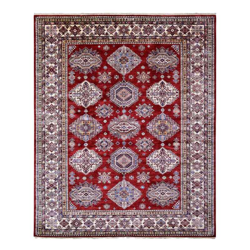 8’4″x9’9″ Afghan Super Kazak with Geometric Medallions Design Ghazni Wool Hand Knotted Rich Red Oriental Rug Sh70301
