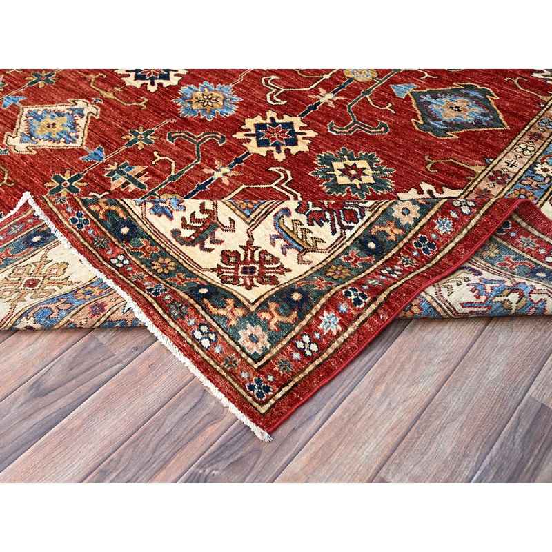 8’5″x10′ Exotic Red, Natural Dyes Afghan Super Kazak with Geometric Medallions Design, Hand Knotted 100% Wool, Denser Weave, Oriental Rug Sh86995