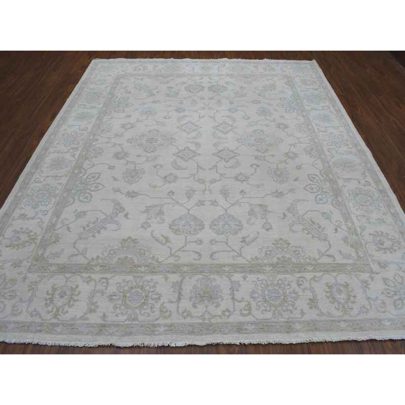 8’5″x9’7″ Ivory Washed Out Peshawar Natural Wool Hand Knotted Oriental Rug Sh54389