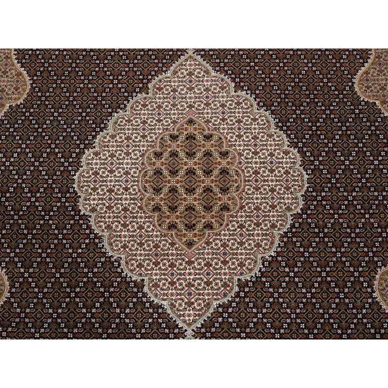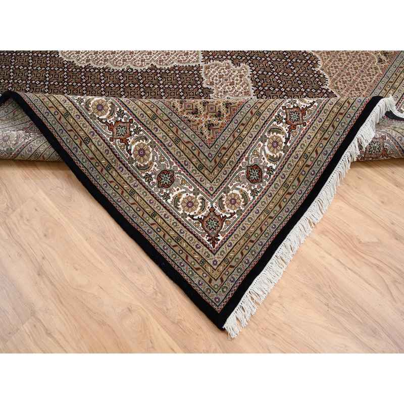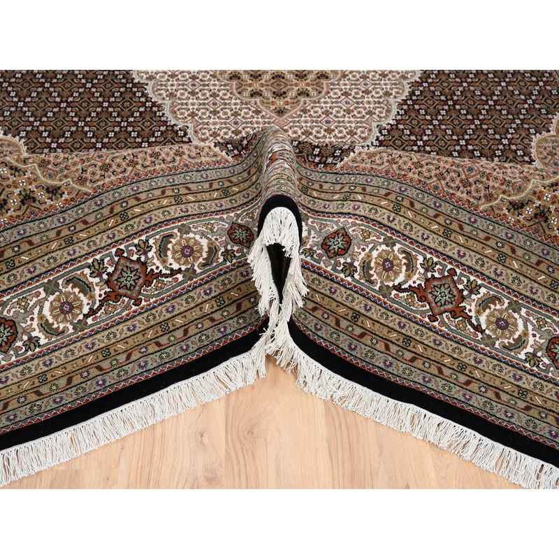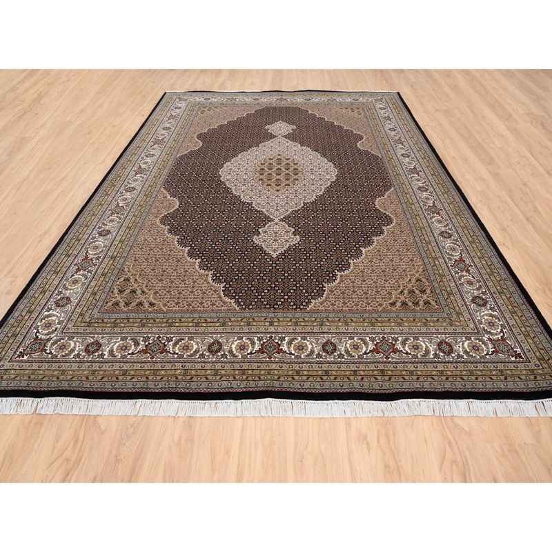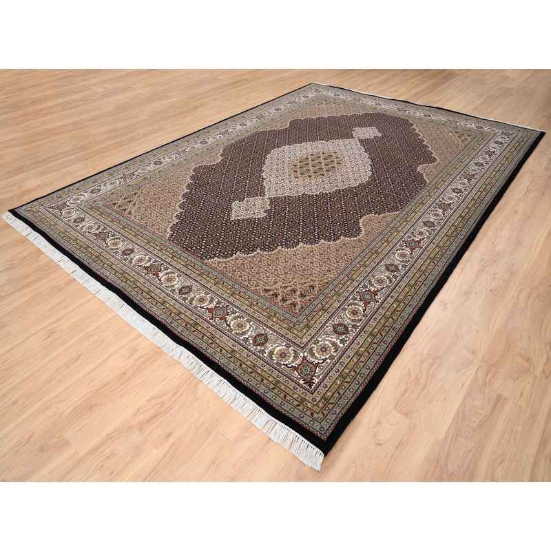 8’6″x12’2″ Black Tabriz Mahi with Fish Medallion Design Wool Hand Knotted Oriental Rug Sh63308