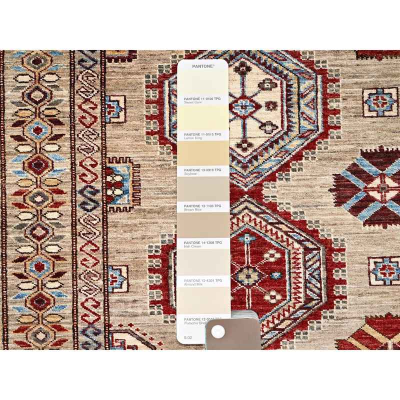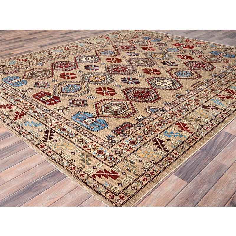 8’6″x9’10” Irish Cream Brown, Afghan Super Kazak with Geometric Medallions, Natural Dyes Densely Woven, Pure Wool Hand Knotted, Oriental Rug Sh86272