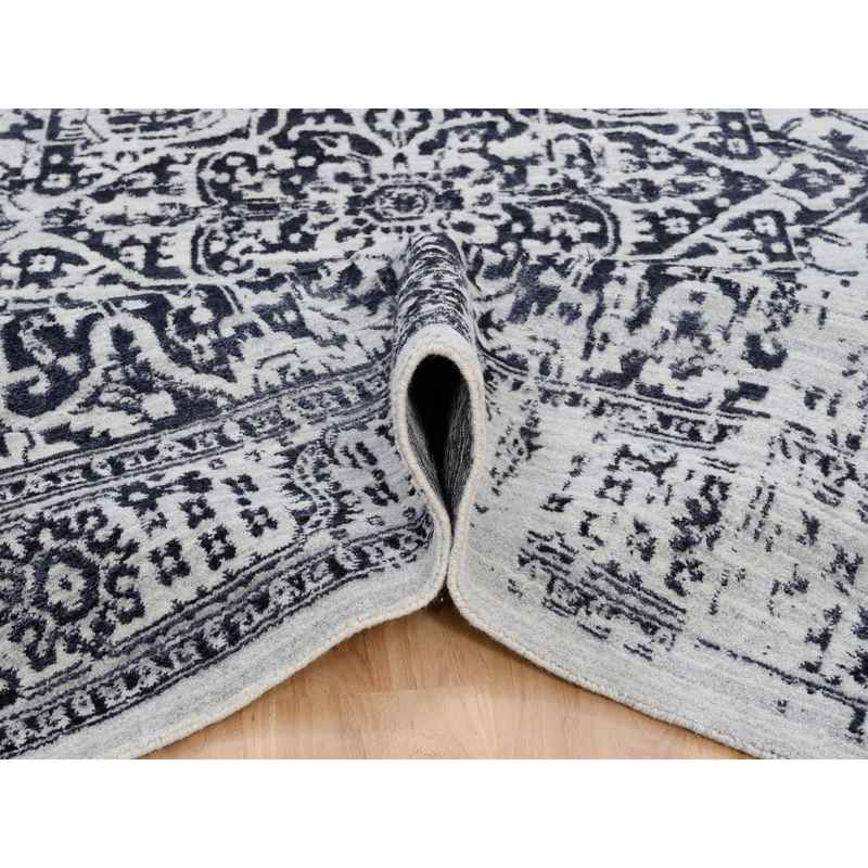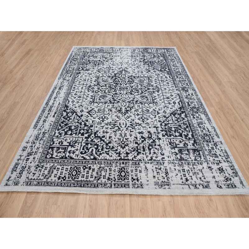8’x10′ Charcoal Black, Erased Serapi Heriz Design, Jacquard Hand Loomed, Wool and Plant Based Silk, Oriental Rug Sh63787