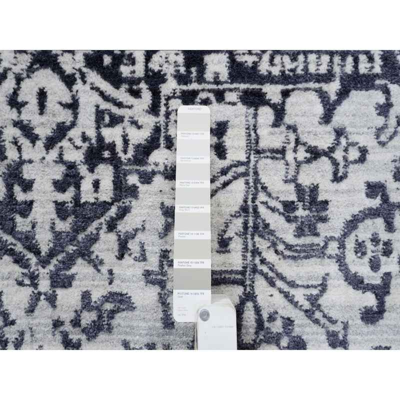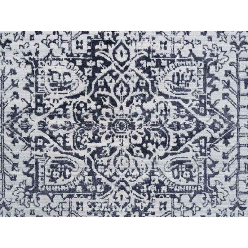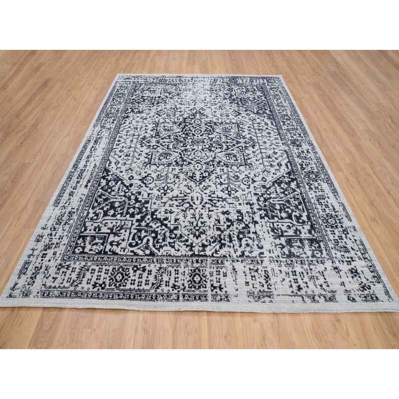 8’x10′ Charcoal Black, Wool and Plant Based Silk, Erased Serapi Heriz Design, Jacquard Hand Loomed, Oriental Rug Sh63810