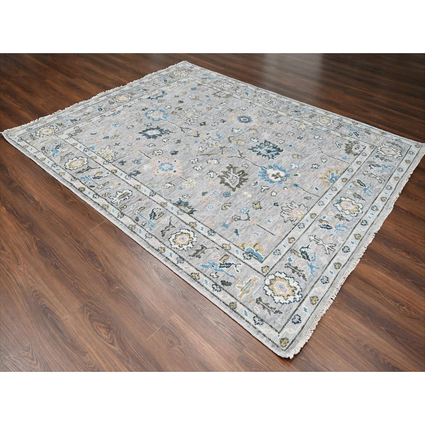8’x10′ Dover Gray, Tone On Tone Oushak Design Soft Wool, Pop Of Colors, Lush and Plush Supple Collection, Hand Knotted, Oriental Rug Sh84897