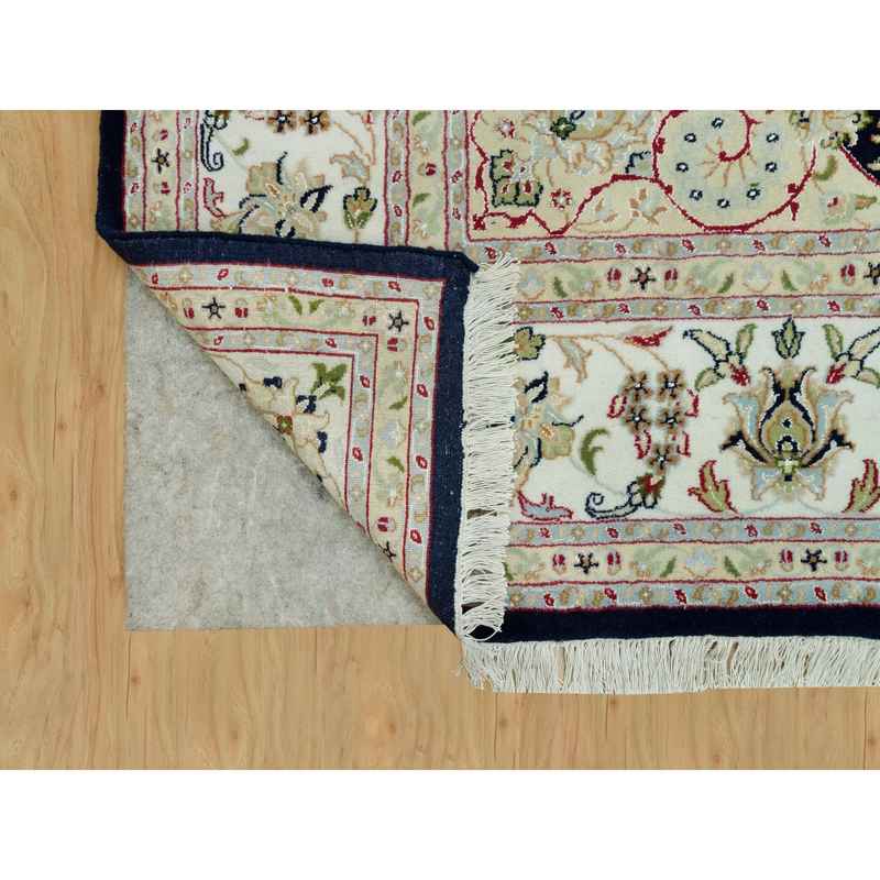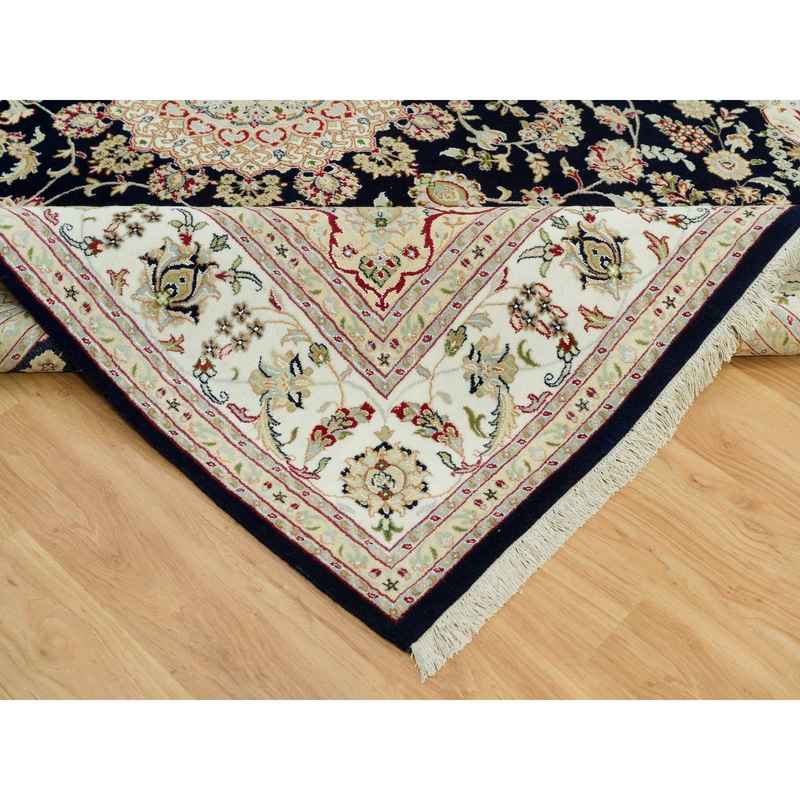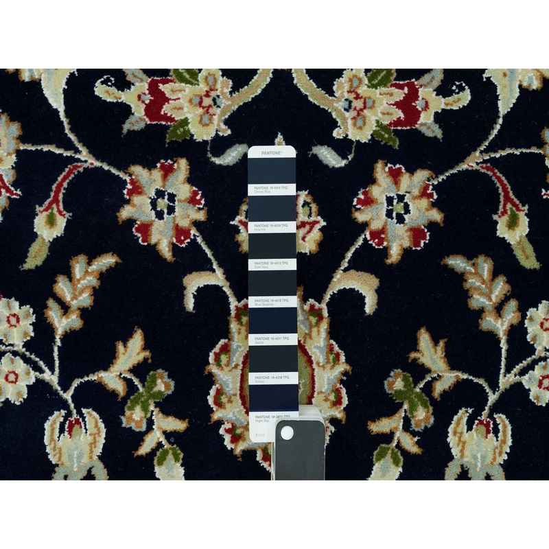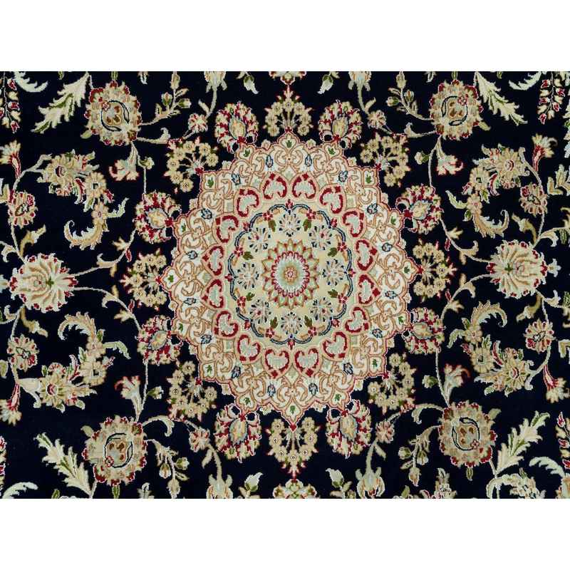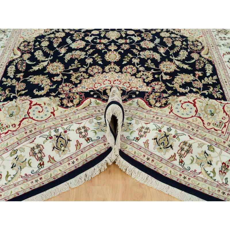 8’x10′ Graphite Blue, Hand Knotted, Nain with Center Medallion Flower Design, 250 KPSI, Wool and Silk, Oriental Rug Sh90324