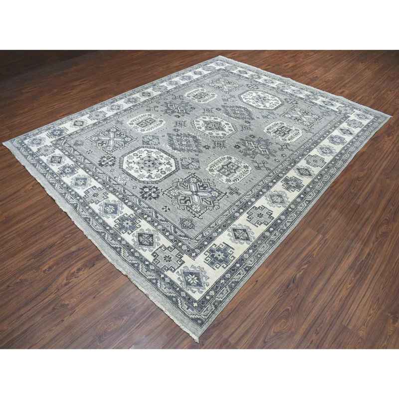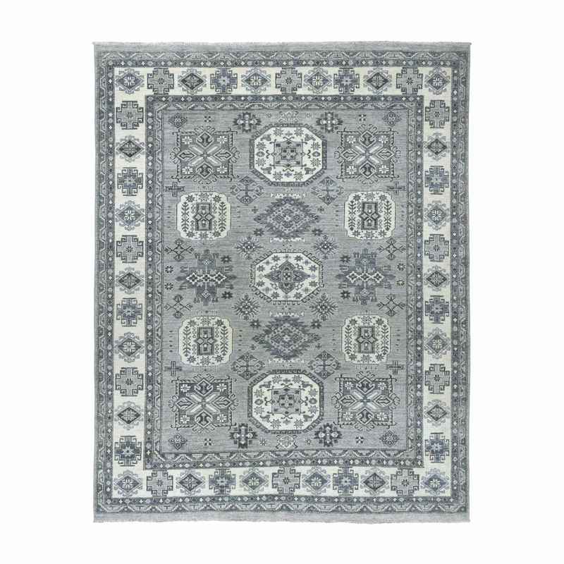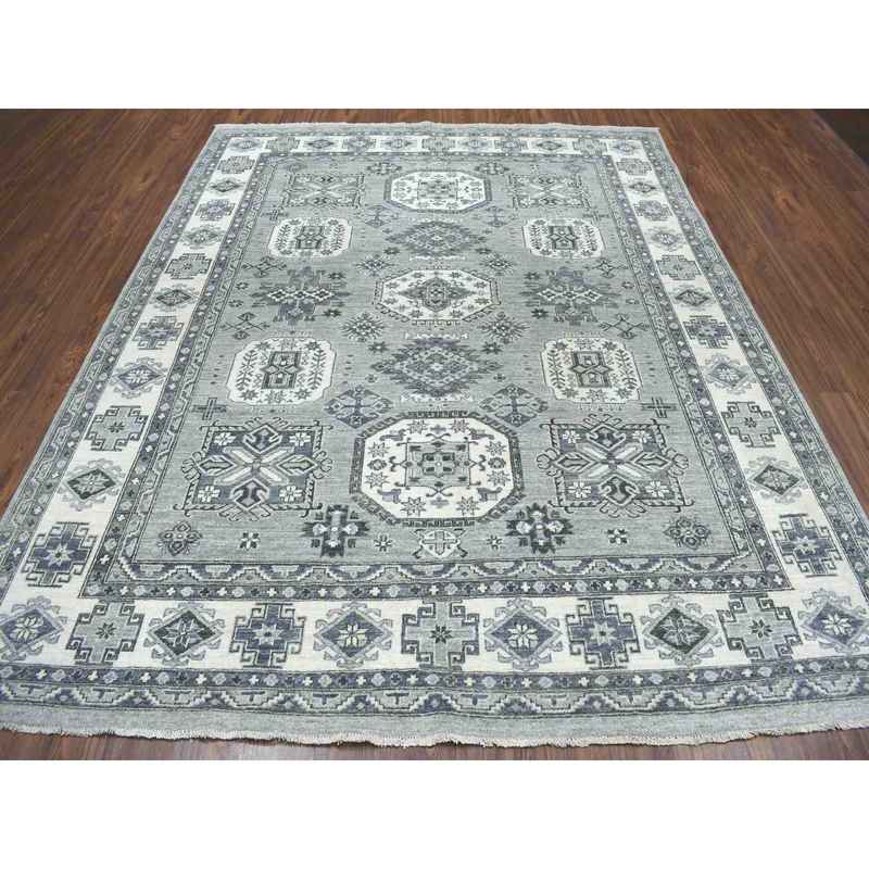 8’x10′ Gray Pure Wool Hand-Knotted Peshawar With Karajeh Design Oriental Rug Sh51220