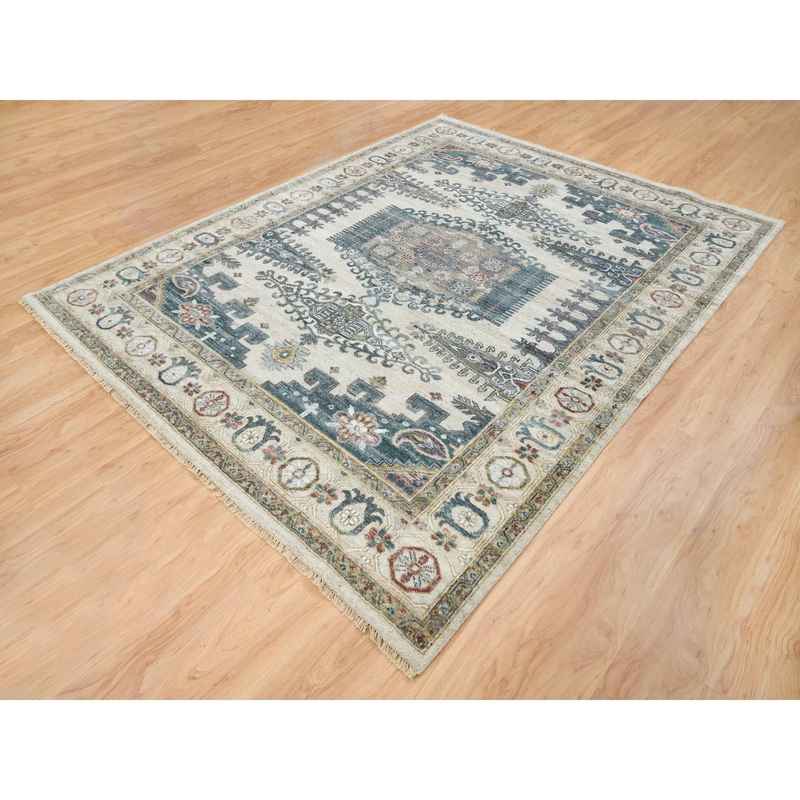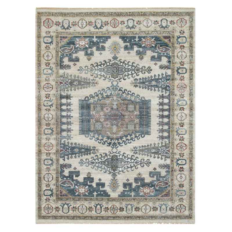8’x10′ Ivory Soft Tones, Hand Knotted, Soft Pile, Reimagined Persian Viss Design, Pure Wool, Oriental Rug Sh65584