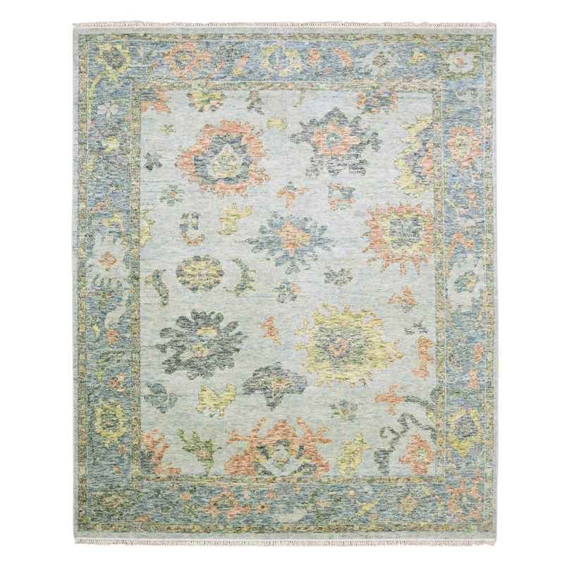 8’x10′ Light Gray, Soft Wool Hand Knotted, Oushak Salt and Pepper Design, Vegetable Dyes Thick and Plush Washed Out, Oriental Rug Sh75186