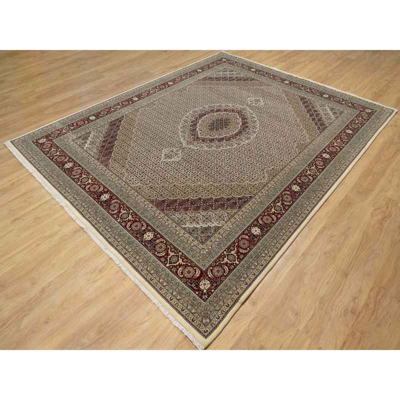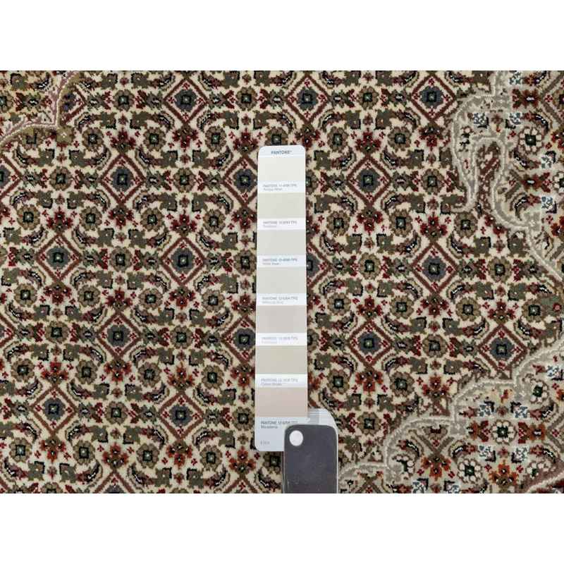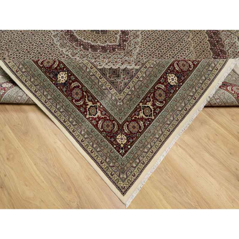 8’x10′ Photon White, Super Mahi with Large Medallion, Hand Knotted, Wool and Silk, 250 KPSI, Oriental Rug Sh90862