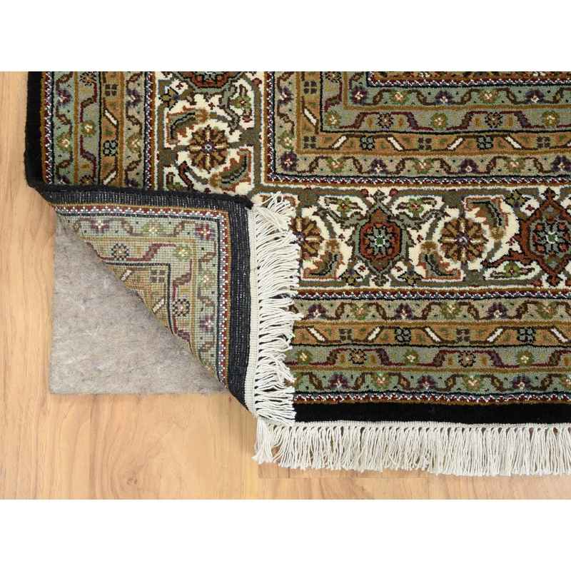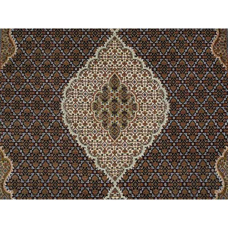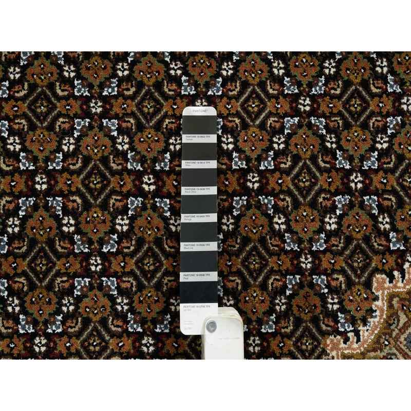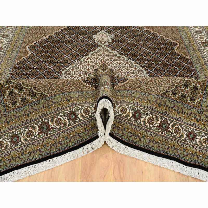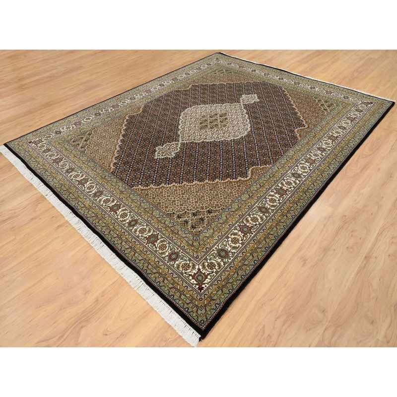 8’x10′ Rich Black, Tabriz Mahi with Fish Medallion Design, 175 KPSI, Hand Knotted, Pure Wool Oriental Rug Sh65049