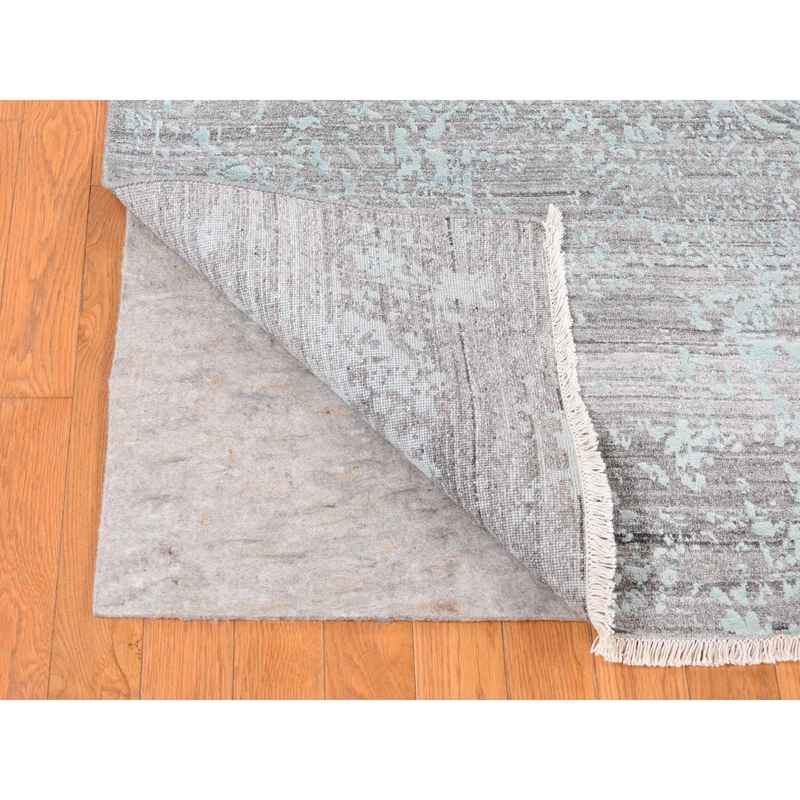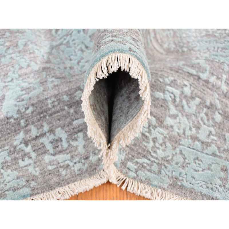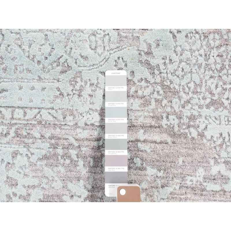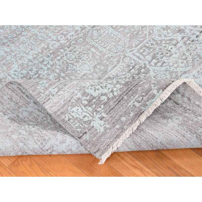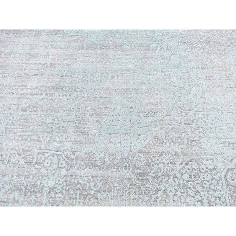 8’x10′ Sea Foam Green, Wool and Silk Hand Knotted, Broken Persian Design, Oriental Rug Sh80789