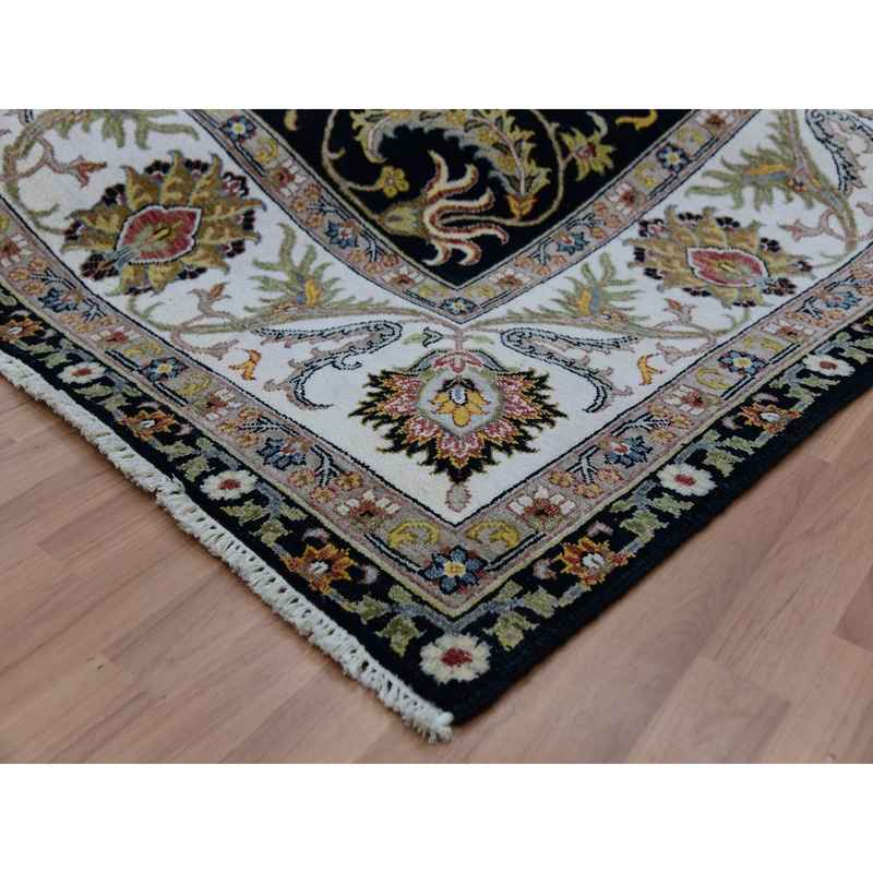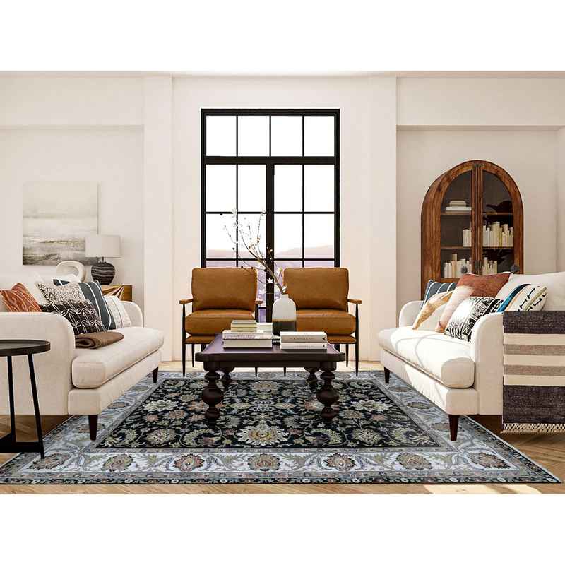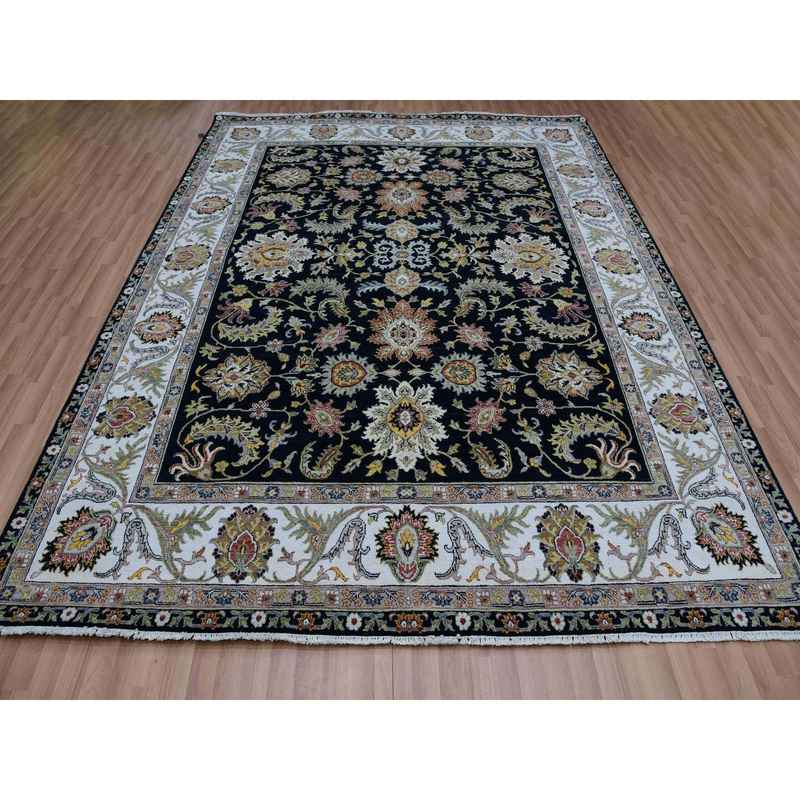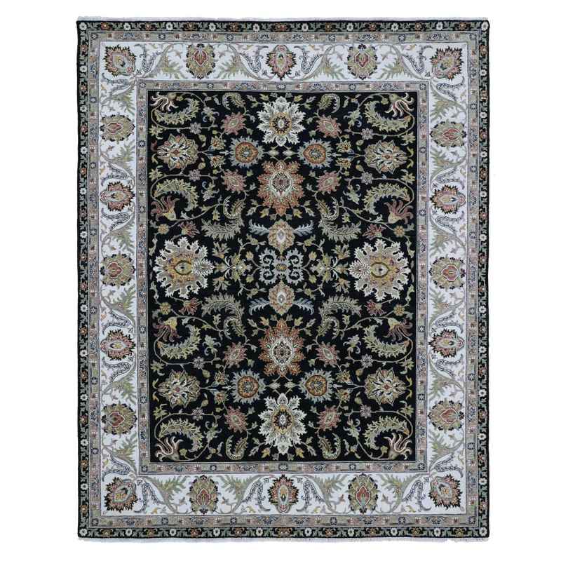 8’x10’1″ Clare Black, Hand Knotted Vegetable Dyes, Agra Organic Wool and Scroll and Large Leaf Design, Oriental Rug Sh83112