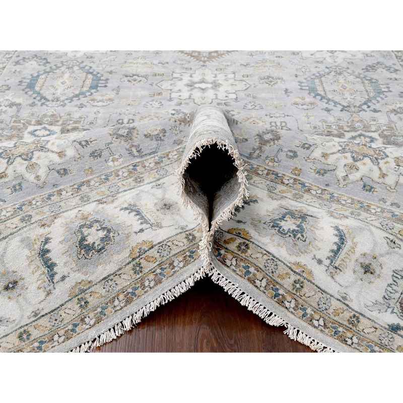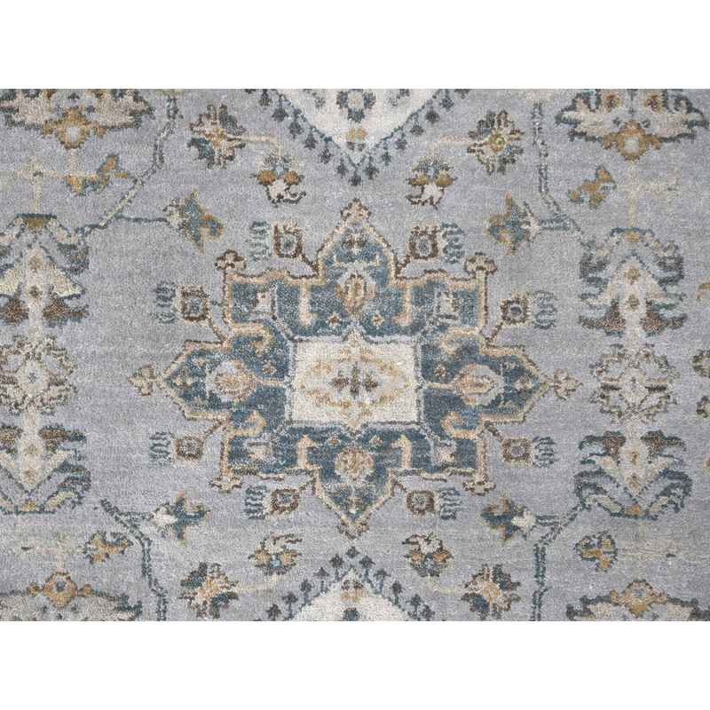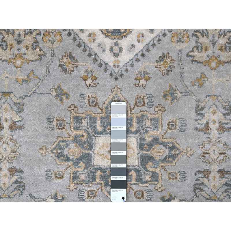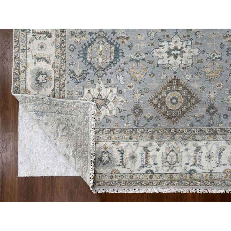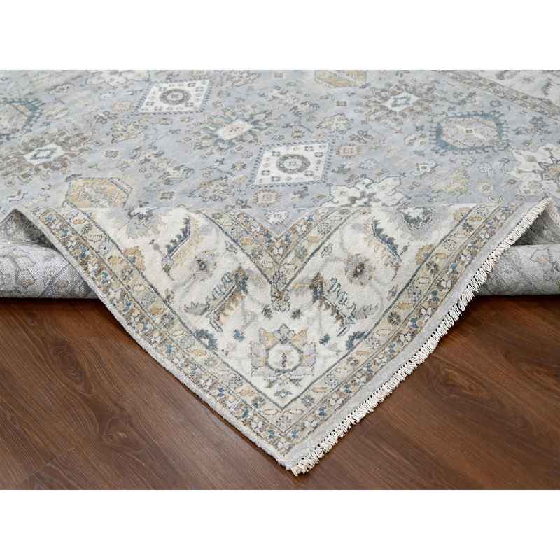 8’x10’1″ Cloud Gray, Karajeh and Geometric Design, Organic Wool, Hand Knotted, Oriental Rug Sh10066
