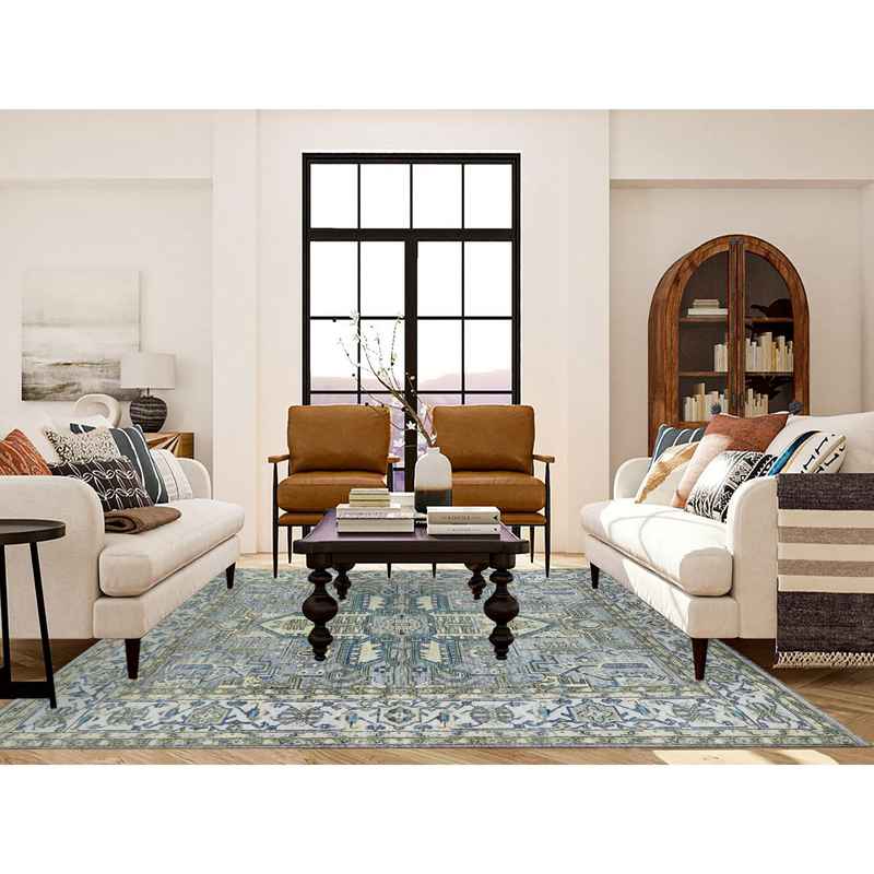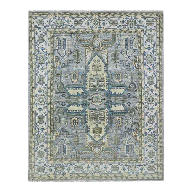 8’x10’1″ Storm Gray, Lush Pile, Hand Knotted, Oushak Weave with Heriz Design, 100% Wool, Oriental Rug Sh79917