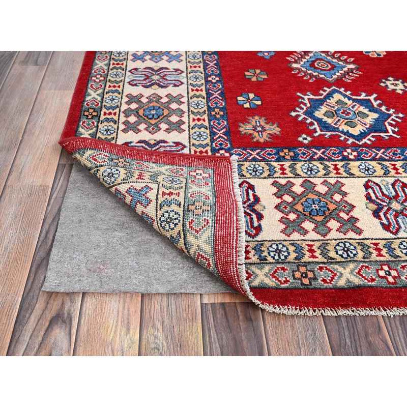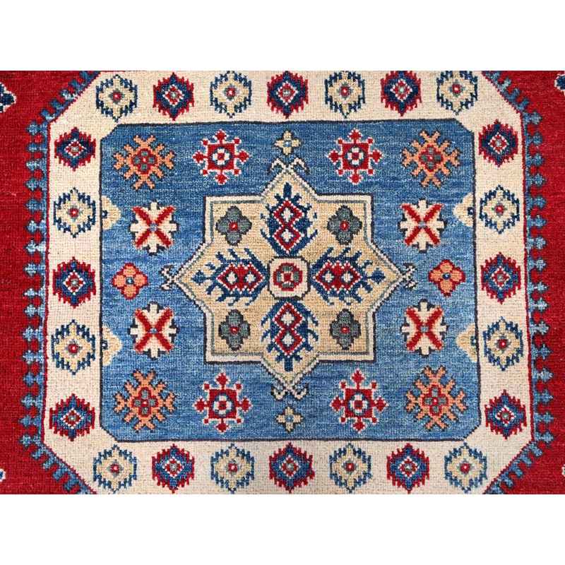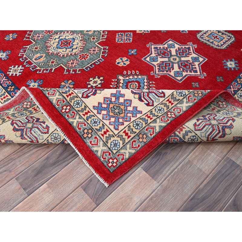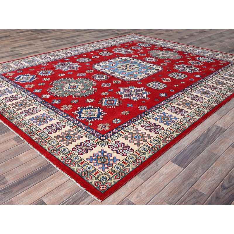 8’x10’2″ Crimson Red Denser Weave Hand Knotted Kazak With Tribal Medallion Design Soft And Shiny Wool, Organic Dyes, Oriental Rug Sh86773