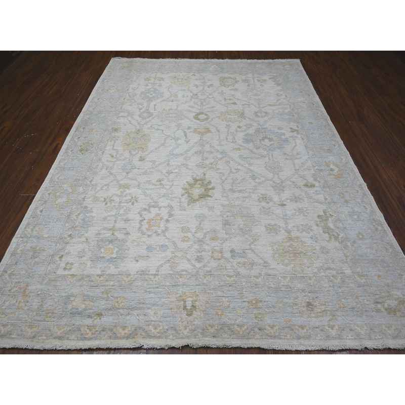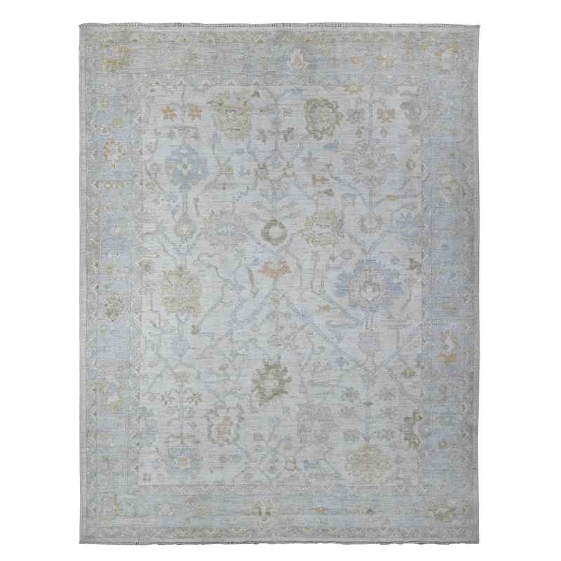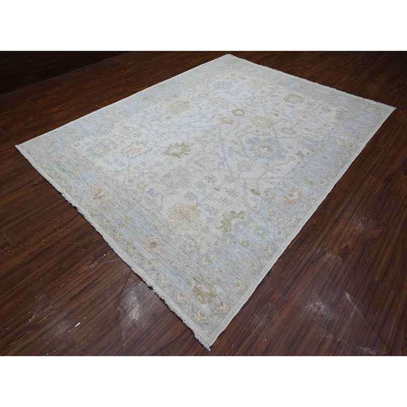 8’x10’2″ Goose Gray, Vegetable Dyes With All Over Village Medallions Design, Hand Knotted, Wool Weft Afghan Angora Oushak, Oriental Rug Sh88809