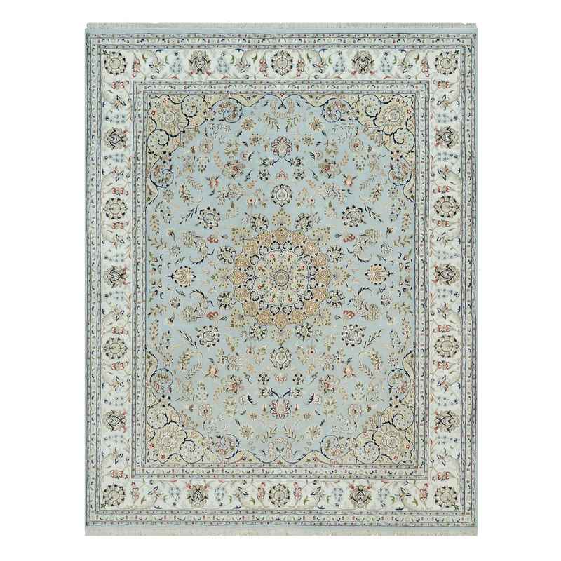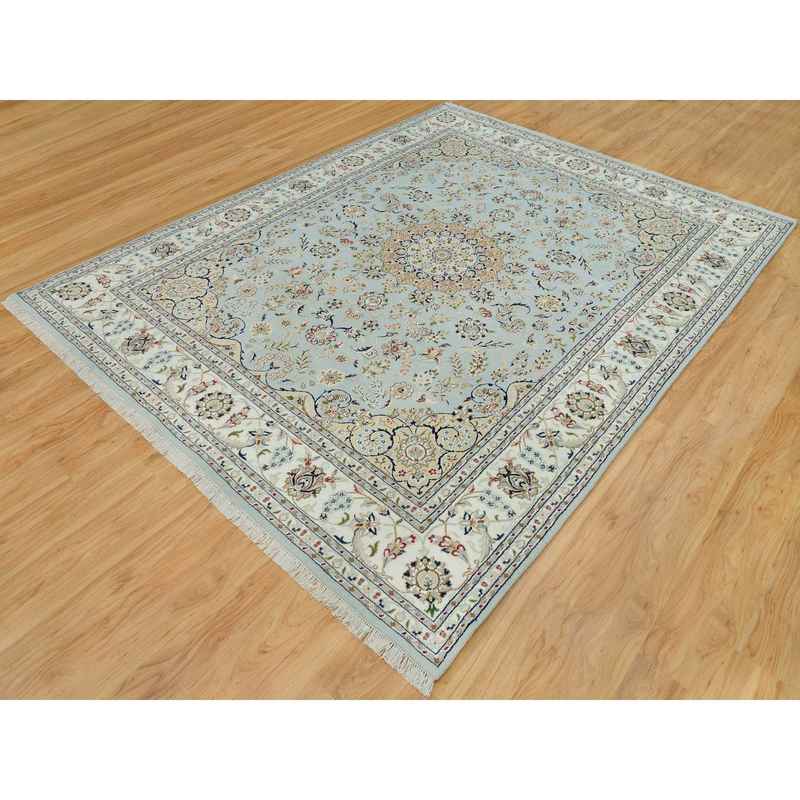 8’x10’3″ Blue Fox Gray, 250 KPSI, Nain with Floral Pattern, 100% Wool, Hand Knotted, Oriental Rug Sh90307