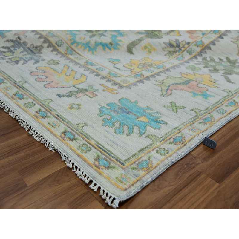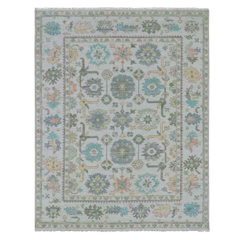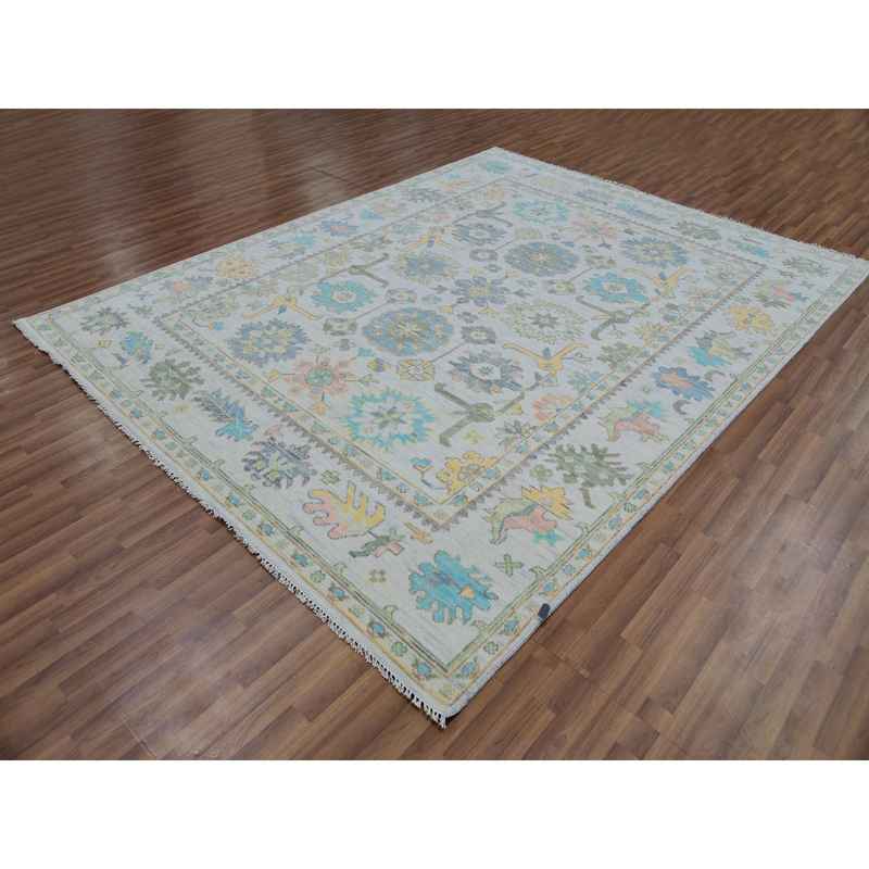 8’x10’3″ Cascading White, Hand Knotted, Oushak Weave and Design, Lush Pile, 100% Wool, Pastel Colors, Oriental Rug Sh79922