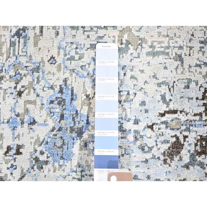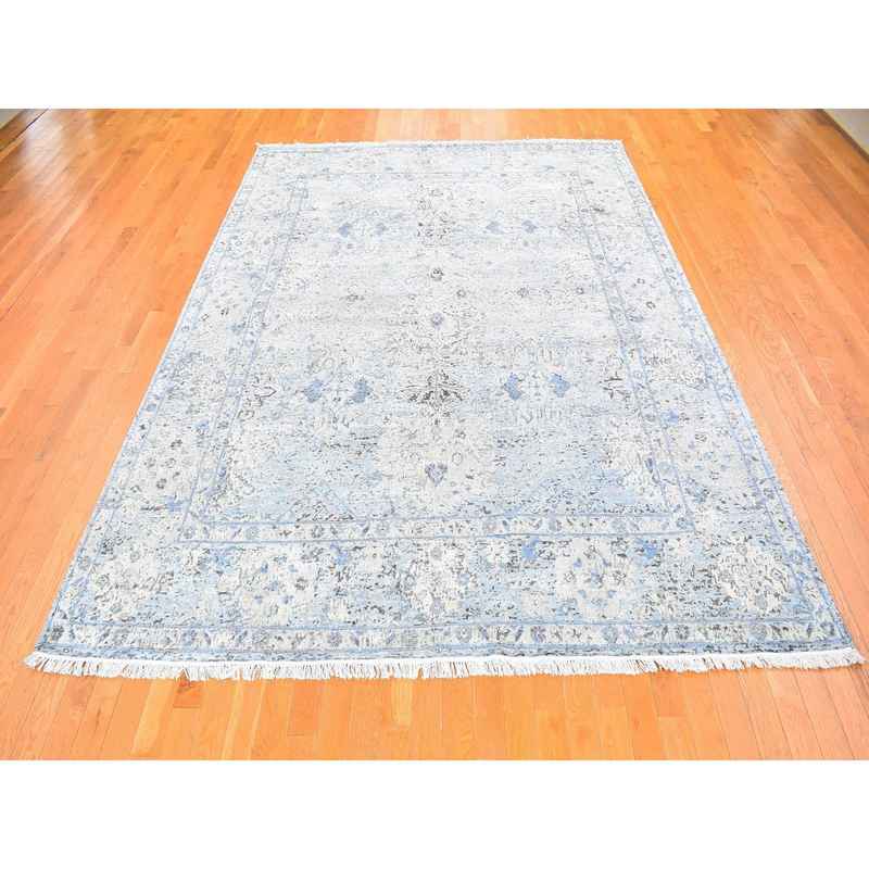 8’x10’4″ Distressed Oushak Pure Silk with Textured Wool Hand Knotted Oriental Rug Sh59724