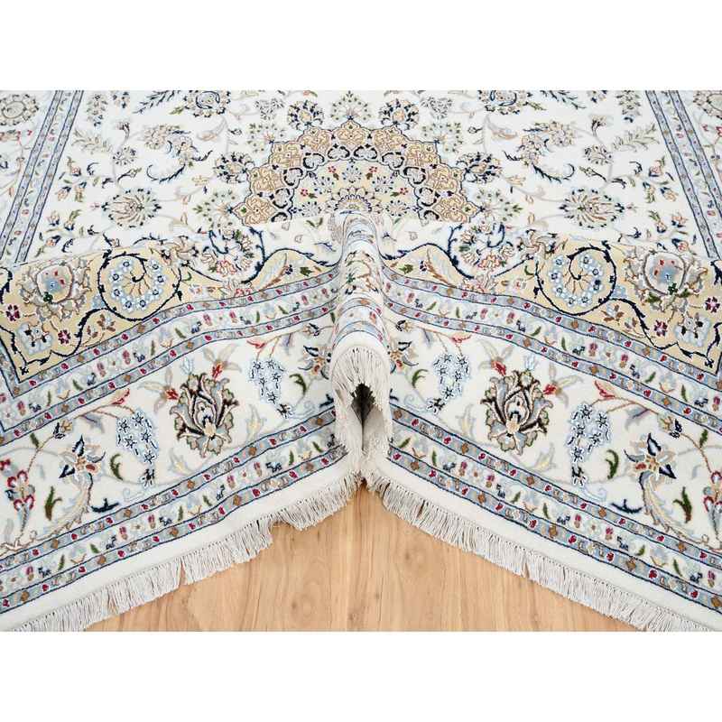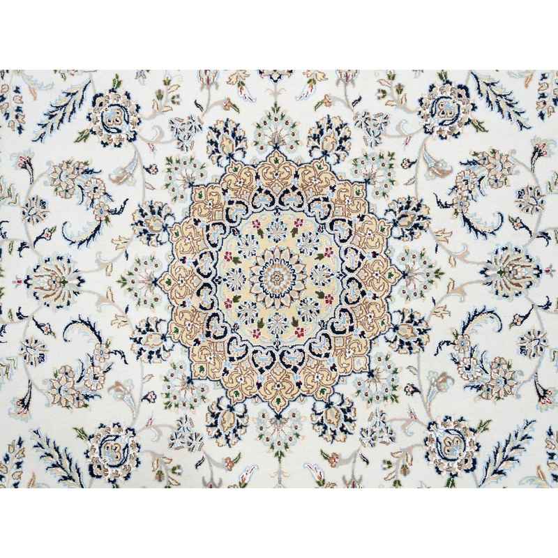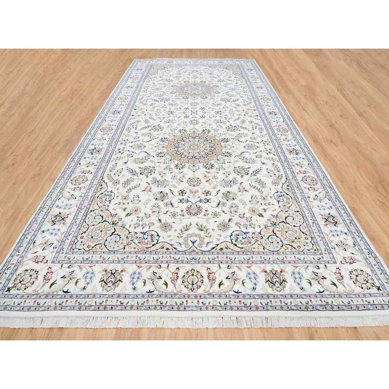8’x16’2″ Ivory Nain with Center Medallion Flower Design 250 KPSI Wool Hand Knotted Oriental Wide Gallery Size Runner Rug Sh63395