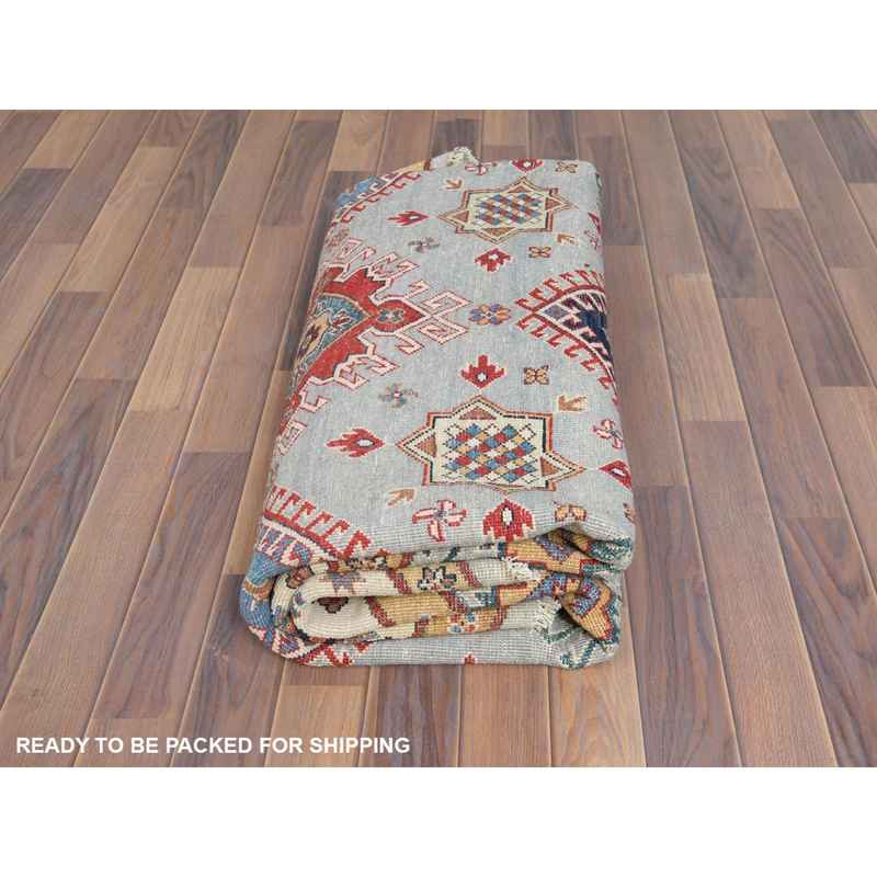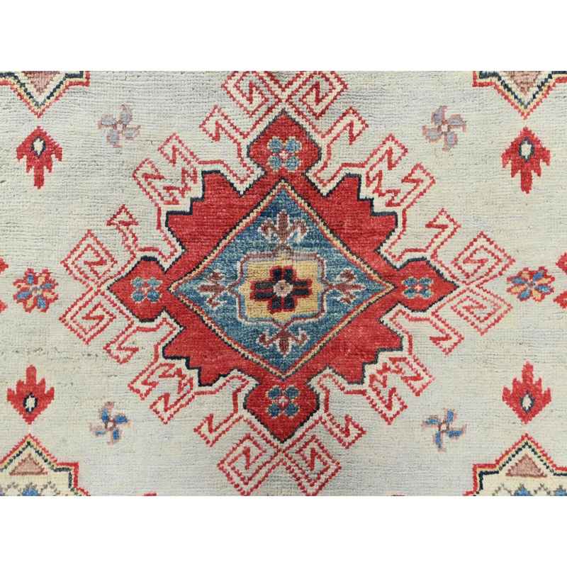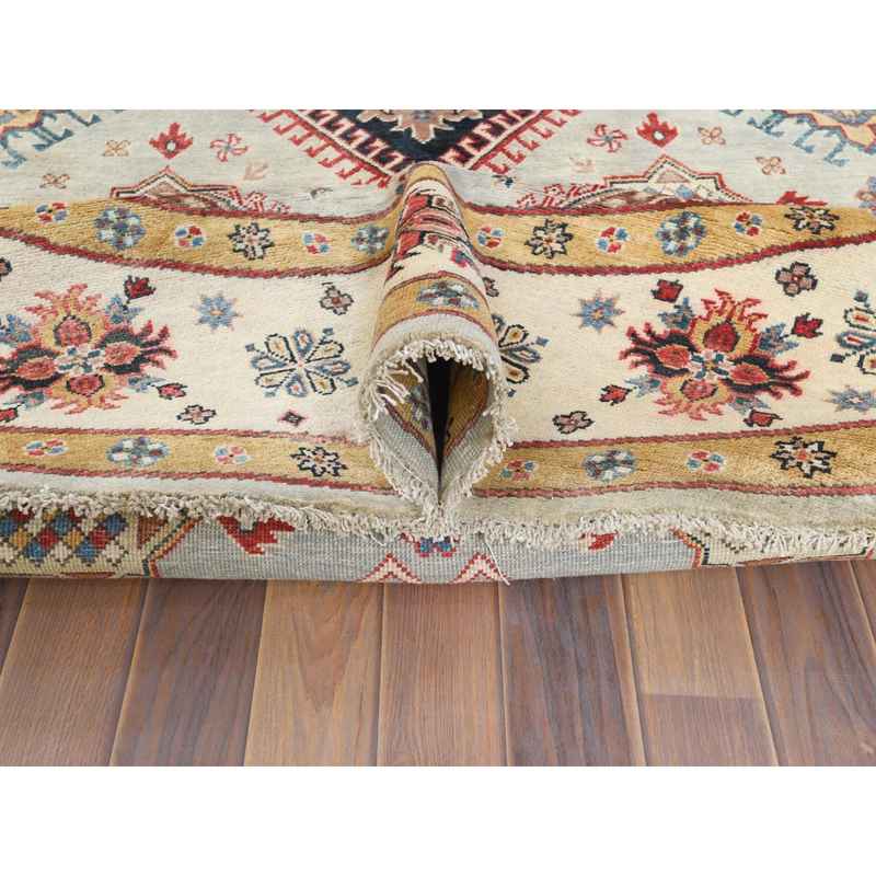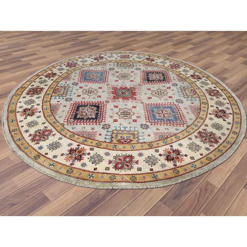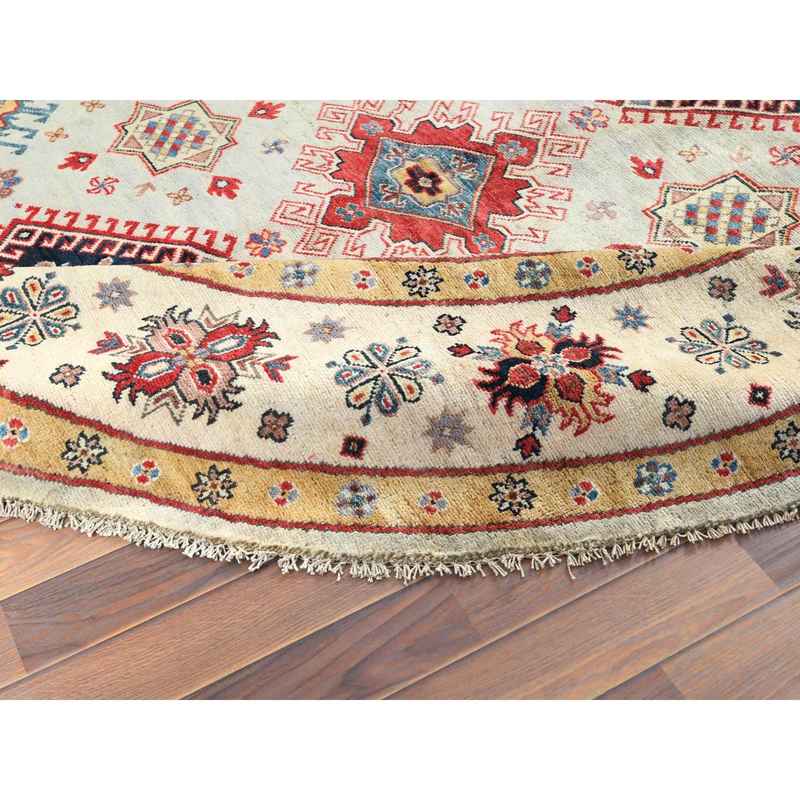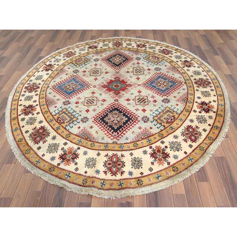 8’x8′ Natural Wool, Hand Knotted, Ivory, Afghan Special Kazak with Caucasian Star Design, Oriental, Round Rug Sh61697