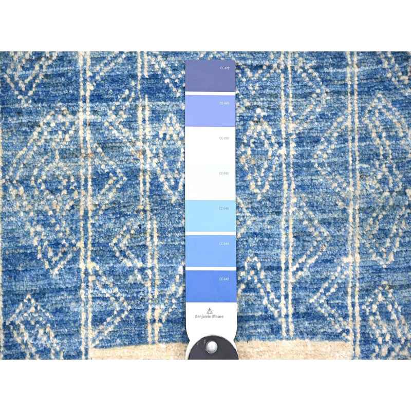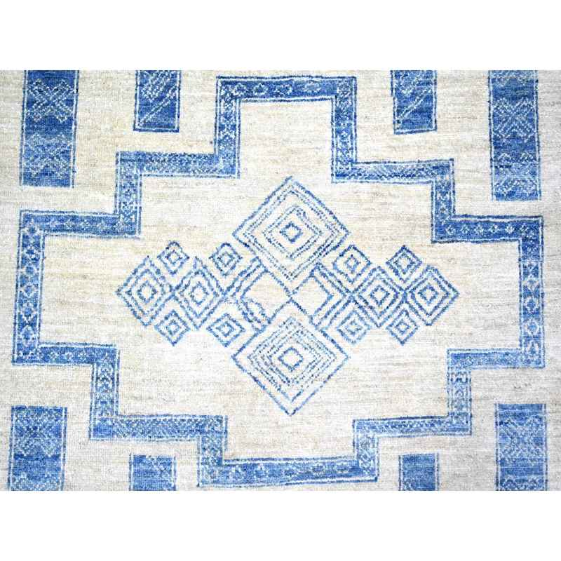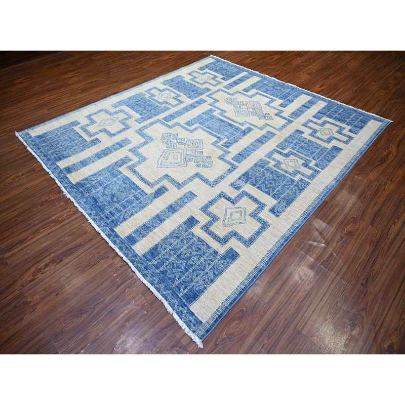 8’x9′ Denim Blue, Fine Peshawar with Intricate Geometric Motifs Vegetable Dyes, 100 % Wool Hand Knotted, Squarish Oriental Rug Sh74277