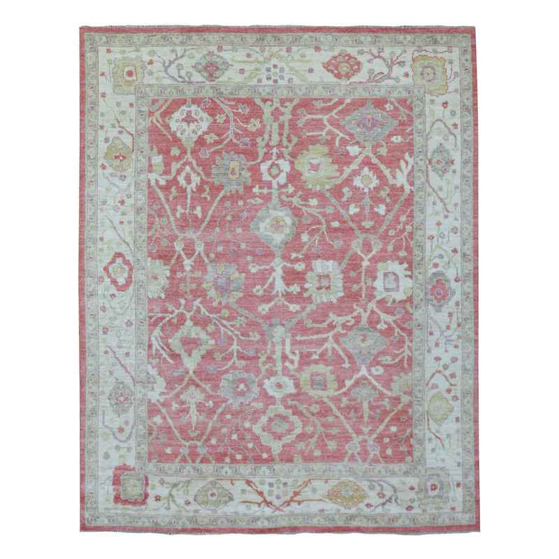 8’x9’10” Coral Pink Angora Oushak with All Over Leaf Design Soft, Velvety Plush Wool Hand Knotted Oriental Rug Sh69026
