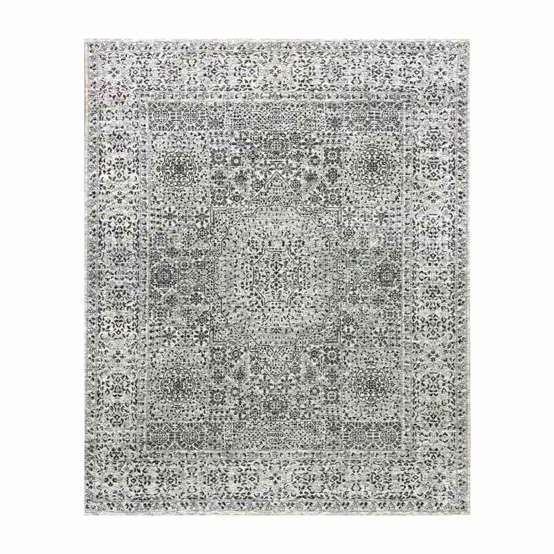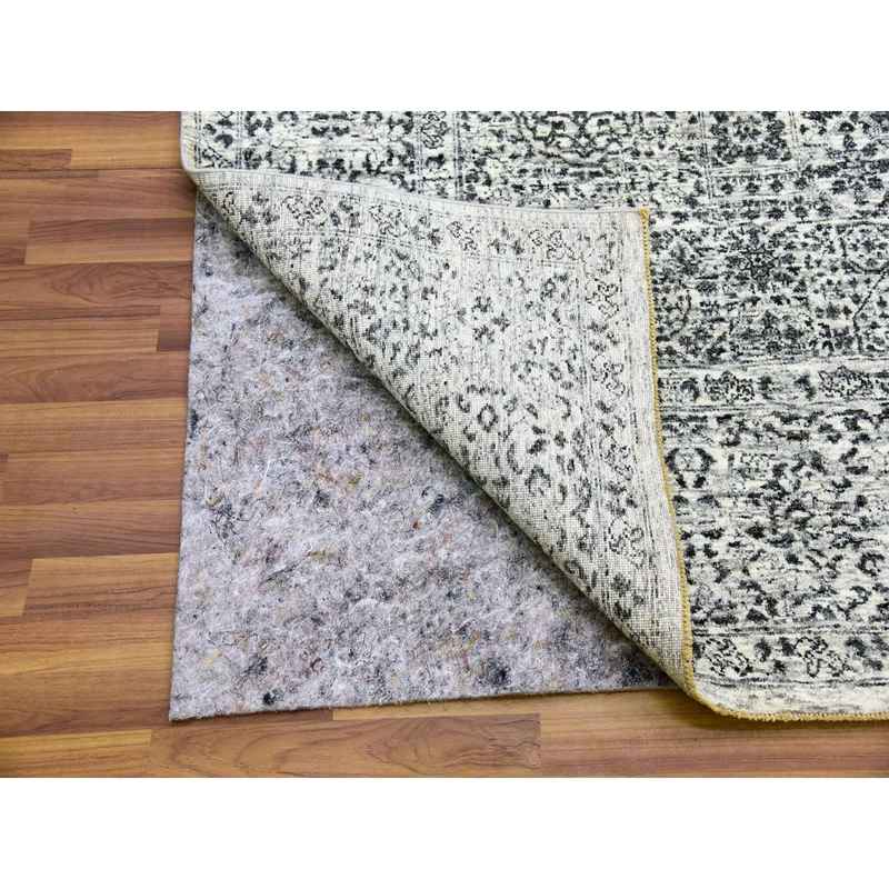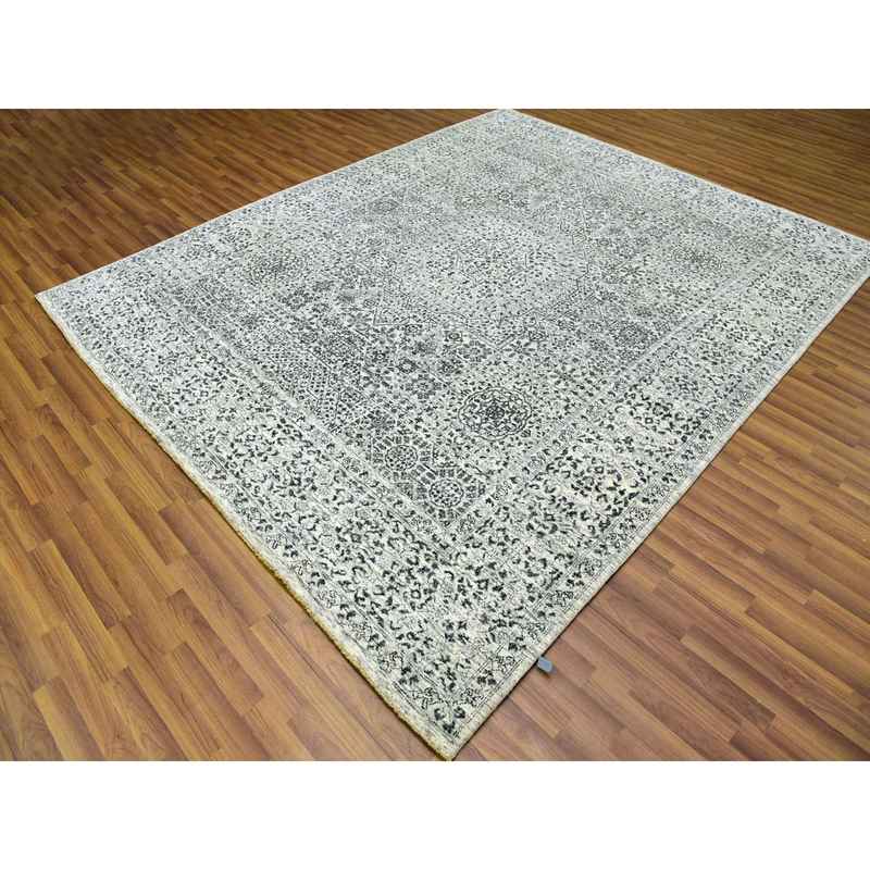 8’x9’10” Ghost White, Tone on Tone Design, Undyed 100% Wool, Hand Knotted, Mamluk Dynasty, Oriental Rug Sh79471