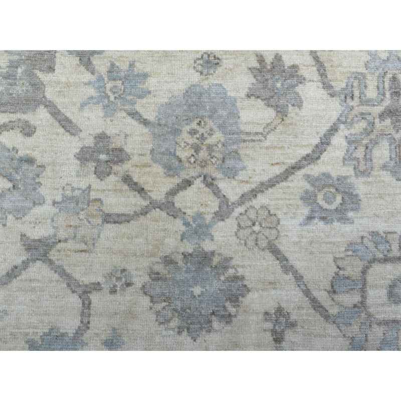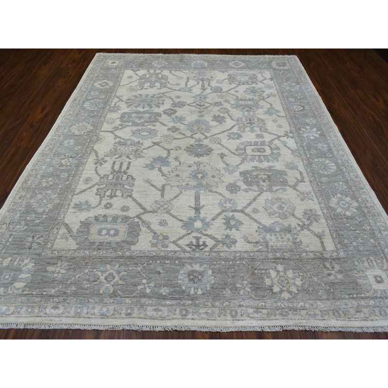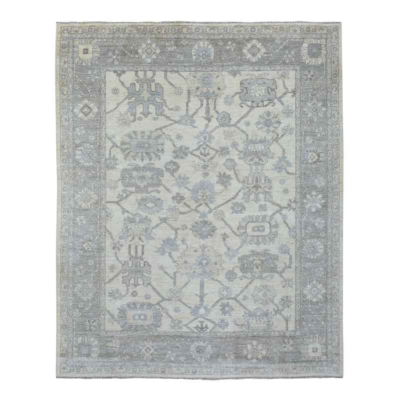 8’x9’10” Ivory Angora Oushak with Leaf Design Hand Knotted Soft and Supple Wool Oriental Rug Sh69634