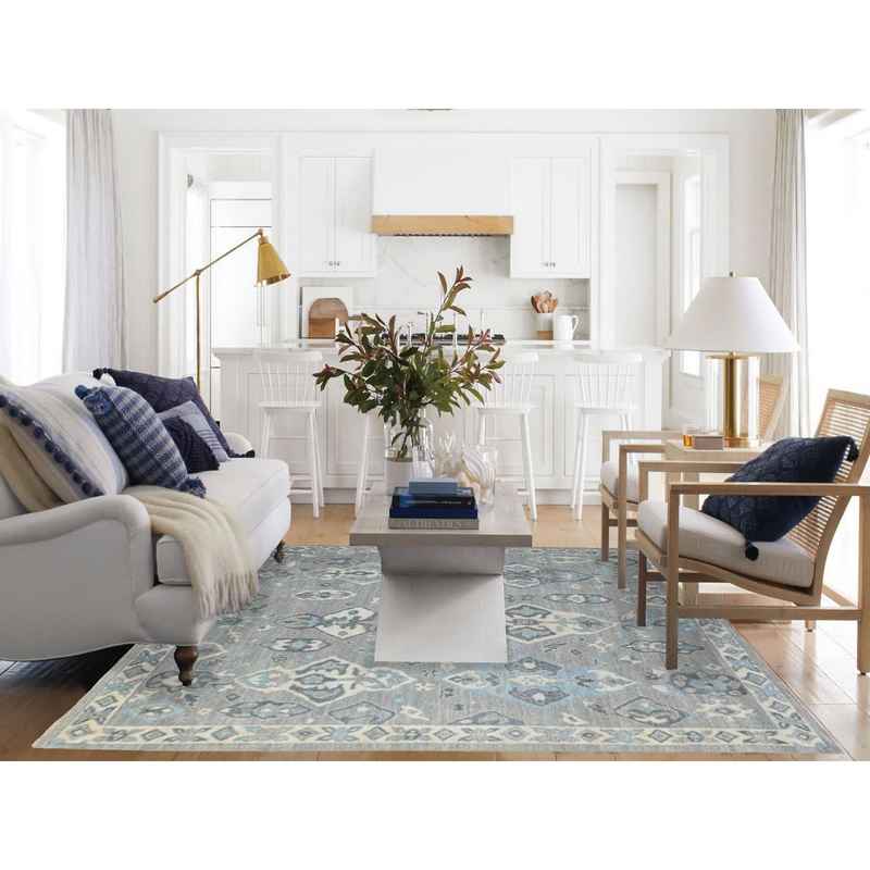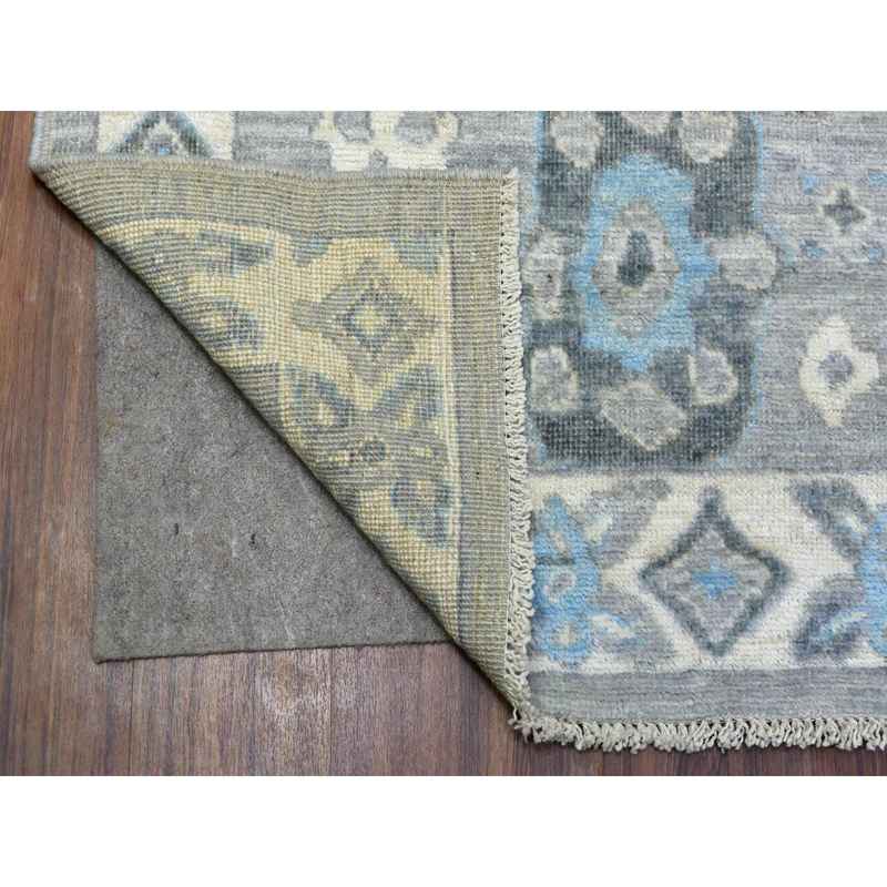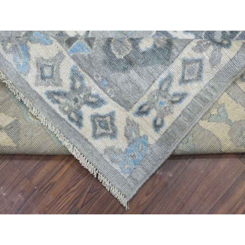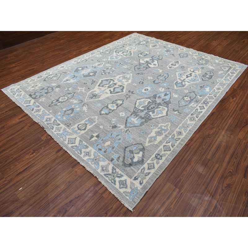 8’x9’10” Organic Wool Hand Knotted Gunmetal Gray Afghan Angora Oushak with Geometric Leaf Design Oriental Rug Sh68928