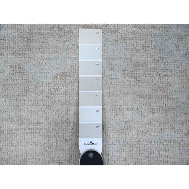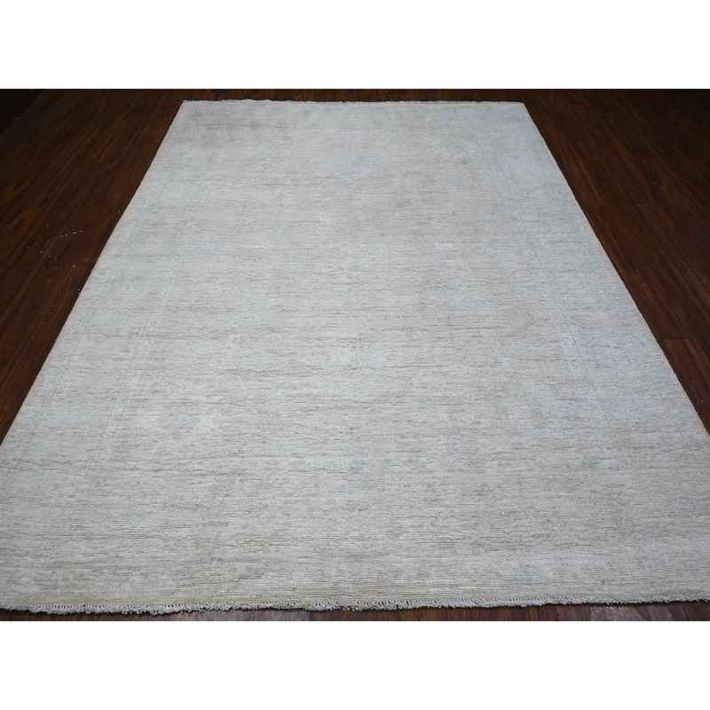 8’x9’10” Platinum Gray, Natural Dyes, Wool Foundation, Hand Knotted, Soft Pile, Faded Afghan Angora Oushak, Village Floral And Leaf Design, Oriental Rug Sh89129