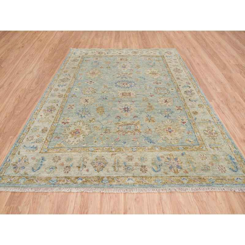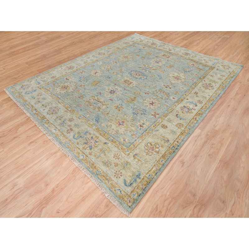 8’x9’10” Seafoam Green, Thick and Plush Pure Wool Hand Knotted, Oushak Design Supple Collection, Oriental Rug Sh64516