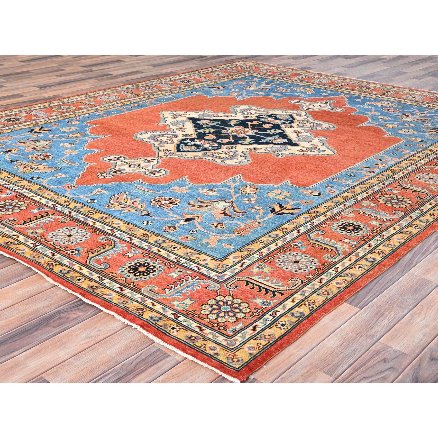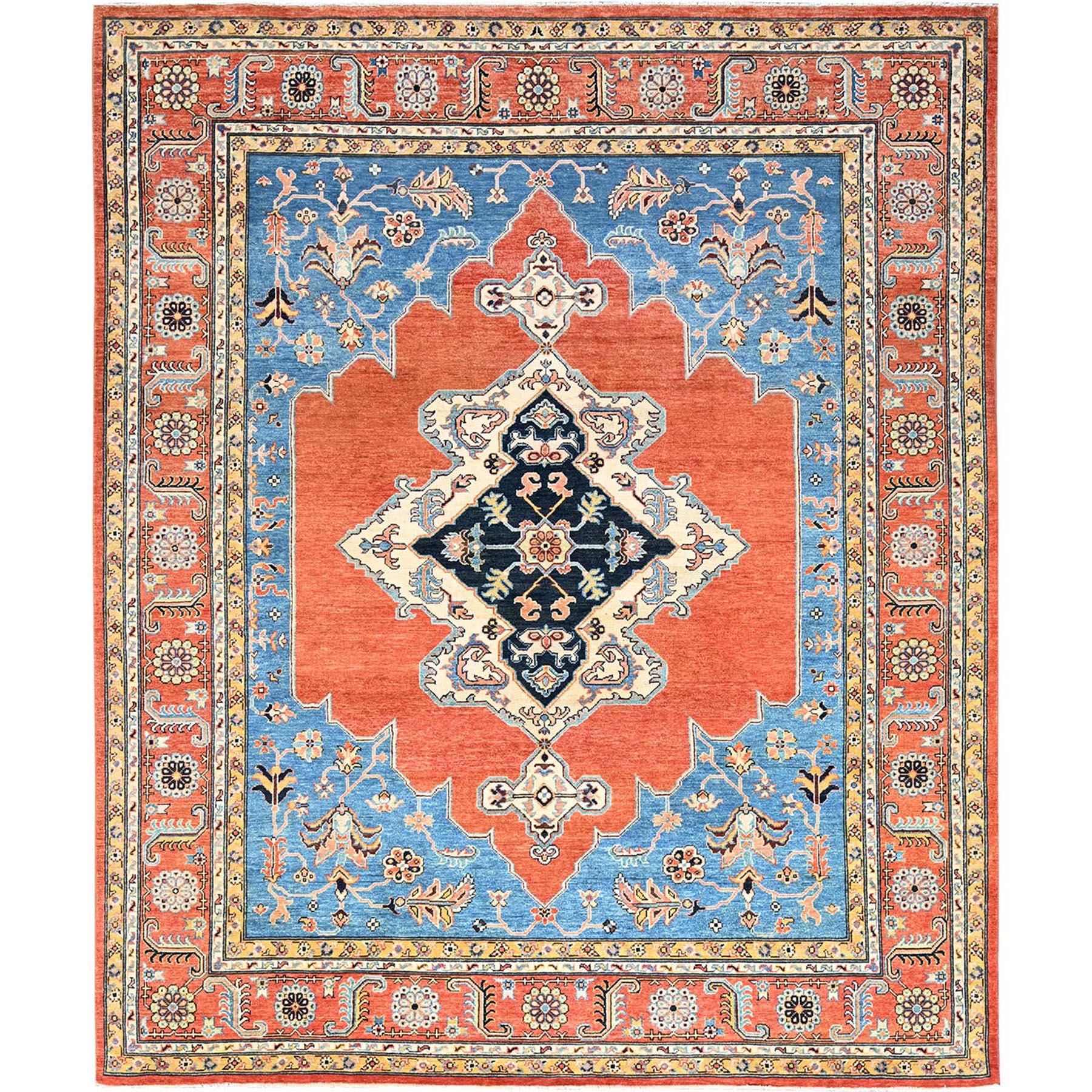 8’x9’10” Tangerine Orange, Soft Wool, Vegetable Dyes, Dense Weave, Afghan Peshawar with Serapi Heriz Design, Hand Knotted, Oriental Rug Sh85461