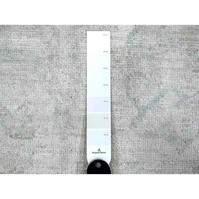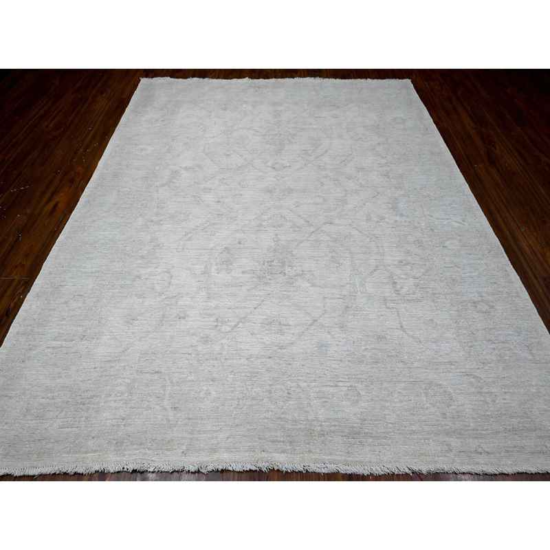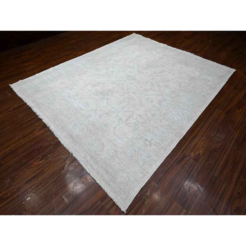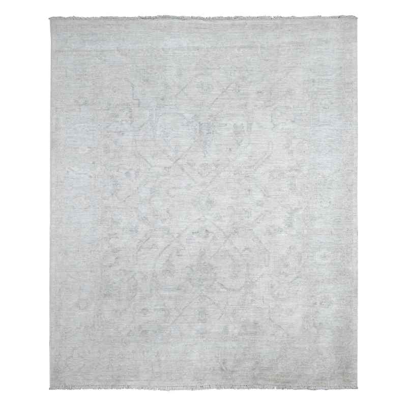 8’x9’6″ Smoke White, Hand Knotted, Wool Weft With Natural Dyes, All Over Village Motifs Design, Angora Oushak, Oriental Rug Sh89320