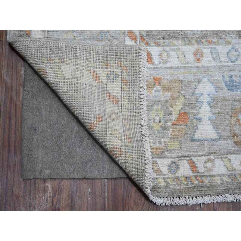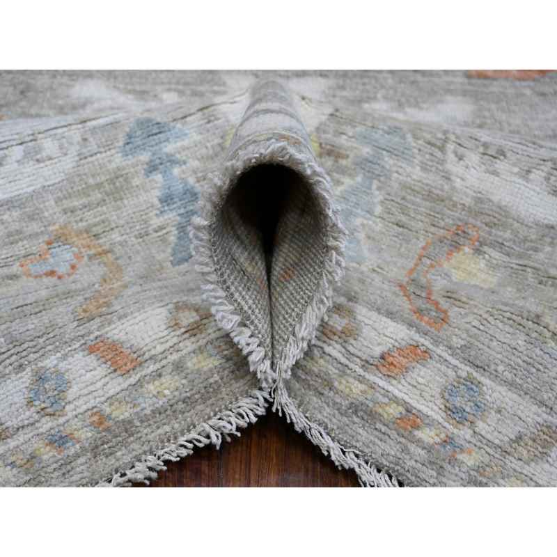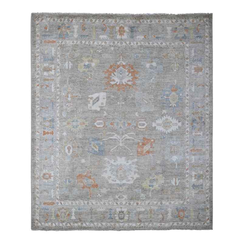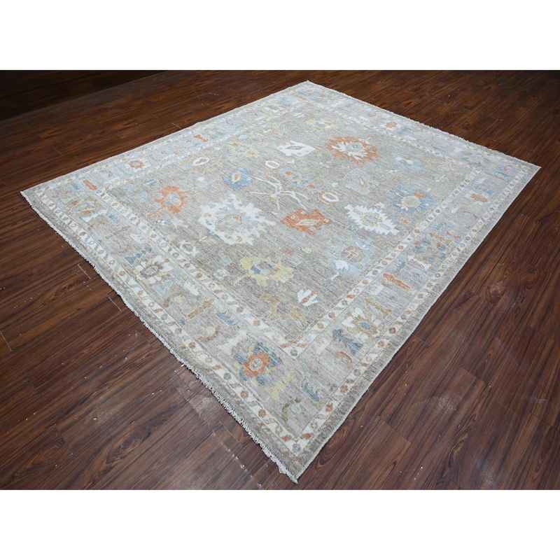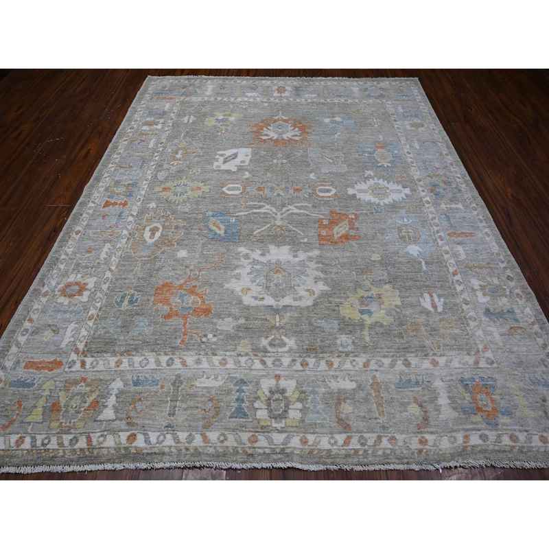 8’x9’7″ Window Gray, Village Floral And Leaf Design, Wool Weft, Hand Knotted, Vegetable Dyes, Angora Oushak Oriental Rug Sh88656