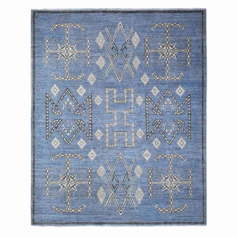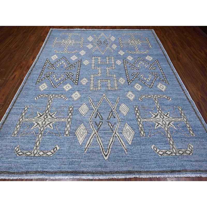 8’x9’8″ Bdazzled Blue, Densely Woven, Natural Dyes With Snowflake Geometric Design, Hand Knotted, Berber Influence, Peshawar, Oriental Rug Sh88871