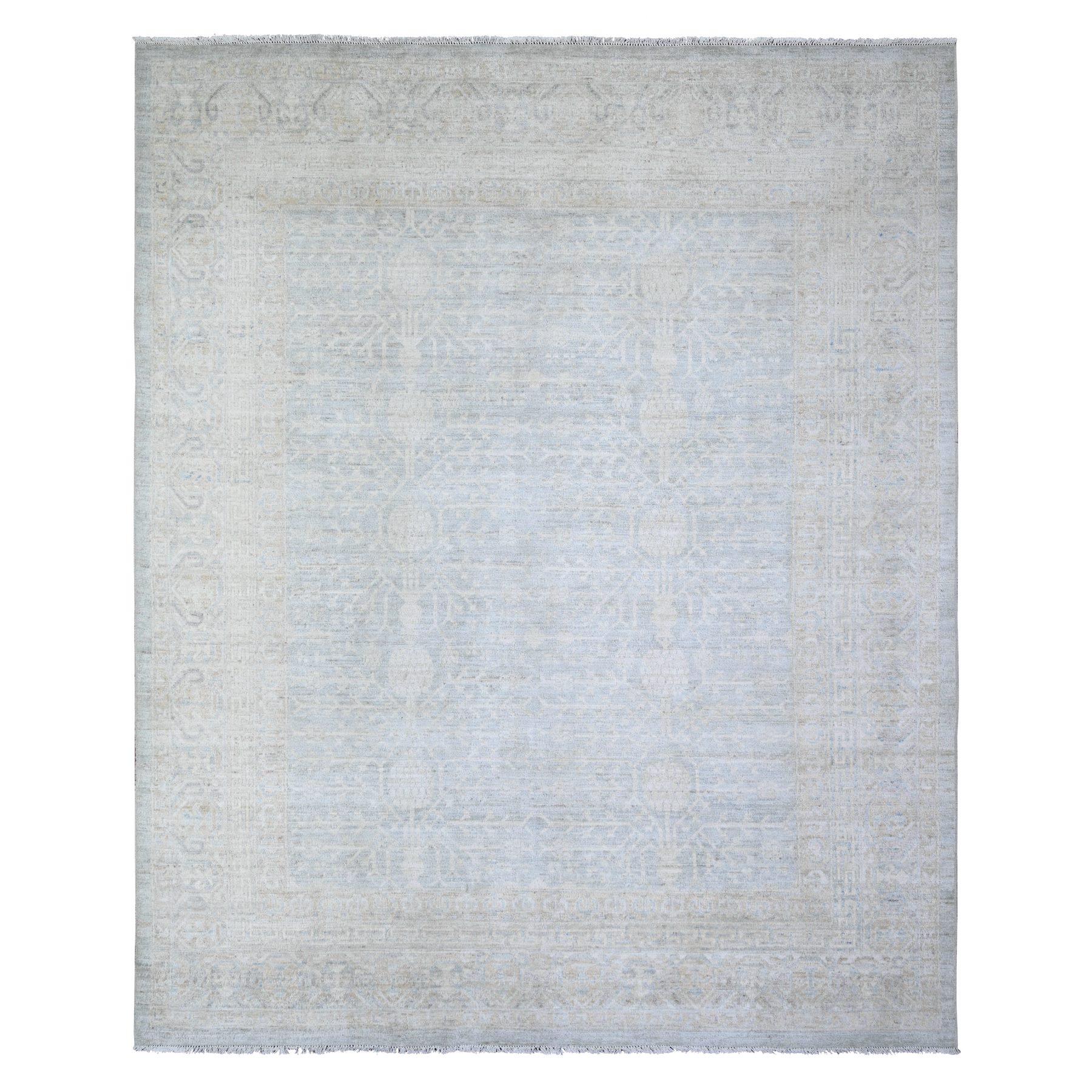 8’x9’8″ Blue Gray With Timberwolf Gray, Natural Wool, Washed Out Samarkand with Pomegranate Design, Natural Dyes, Hand Knotted, Oriental Rug Sh74334
