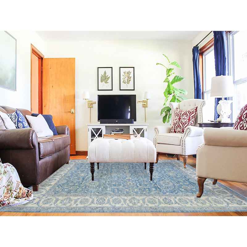 8’x9’9″ Cameo Blue, Finer Peshawar with Mahal Design, Dense Weave Vegetable Dyes, Pure Wool Hand Knotted, Oriental Rug Sh73051