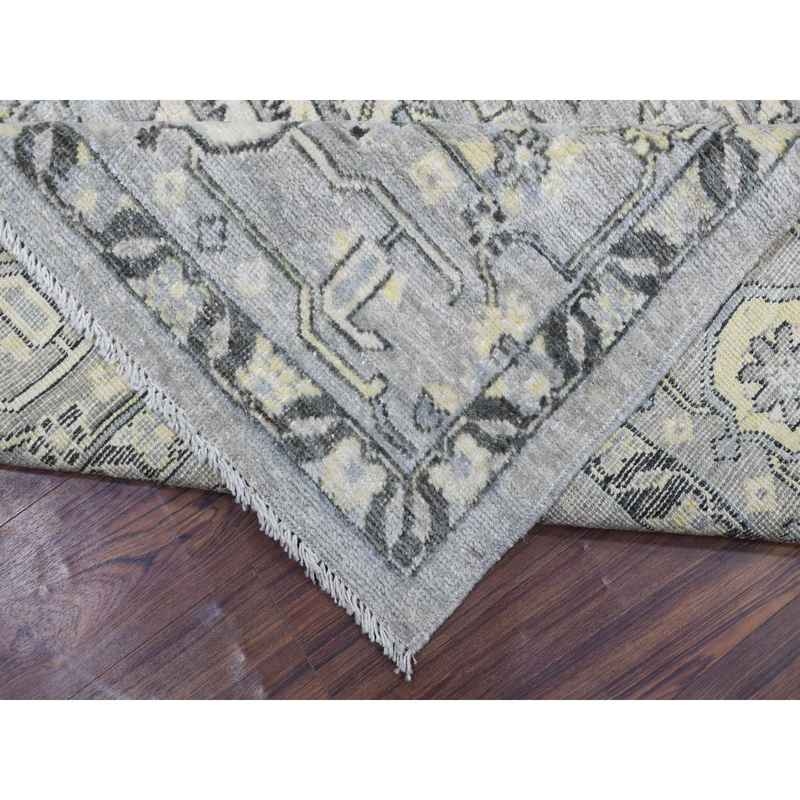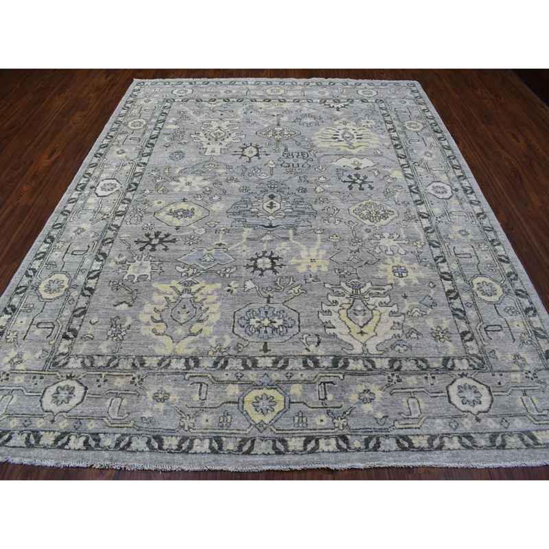 8’x9’9″ Light Gray Angora Oushak with Tribal Design Extra Soft Wool Hand Knotted Oriental Rug Sh68475